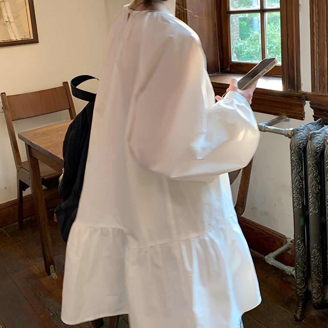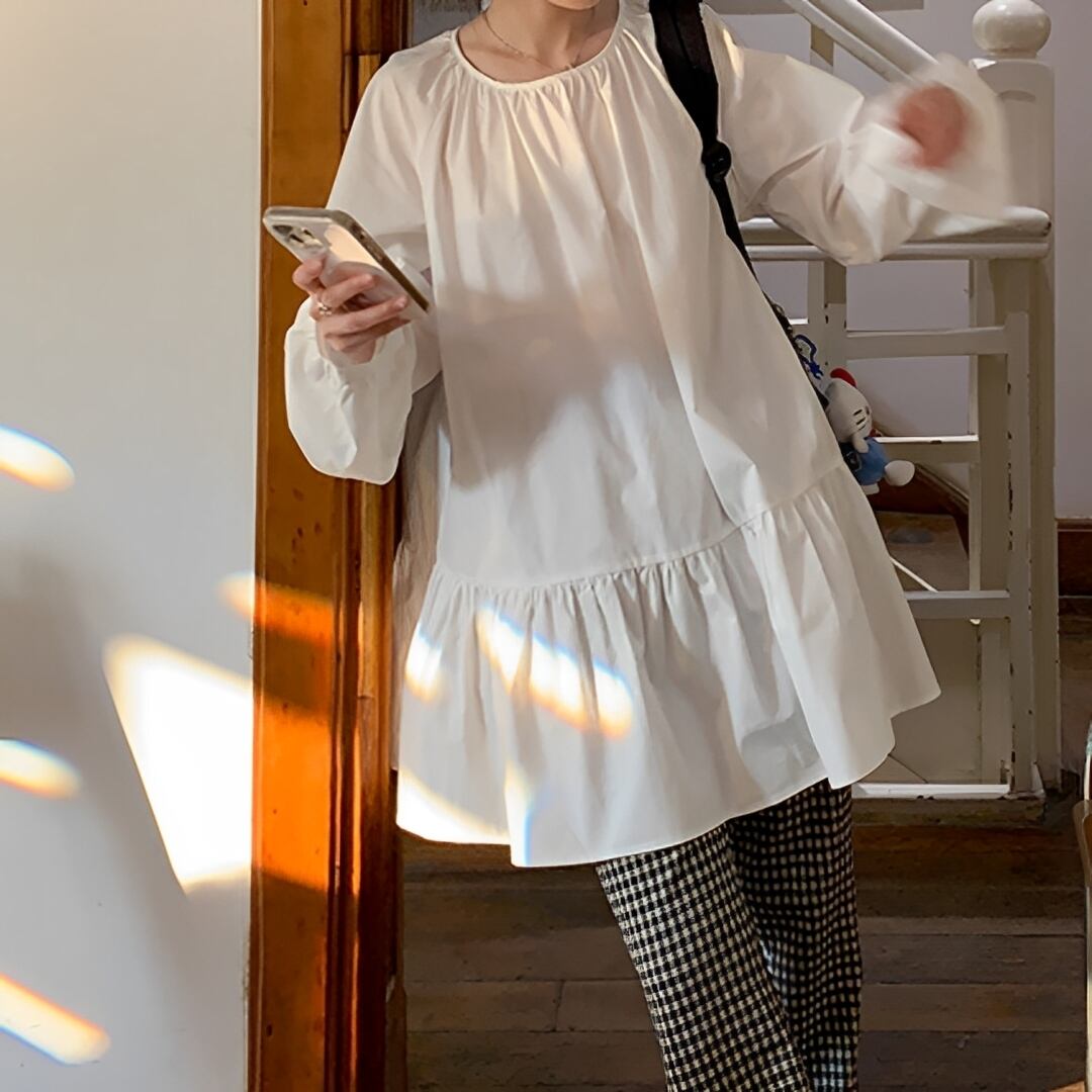 ふんわりとしたシルエットが魅力のフリルティアードルーズチュニック。