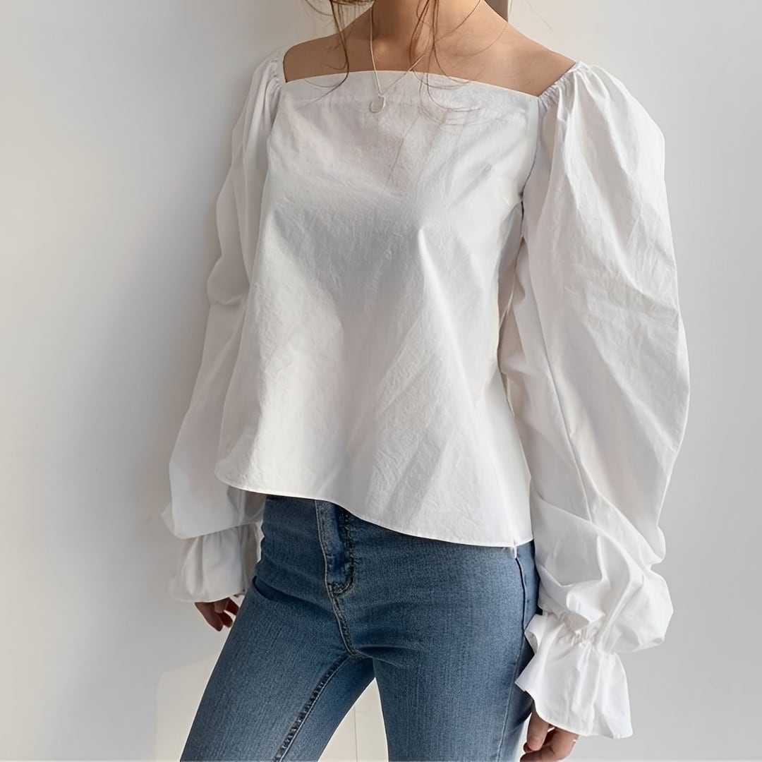 スクエアネックデザインがデコルテを美しく見せ、抜け感のある大人のスタイリングを叶えます。