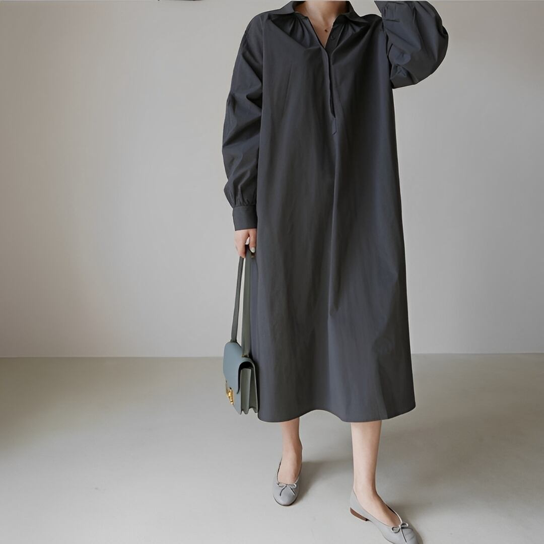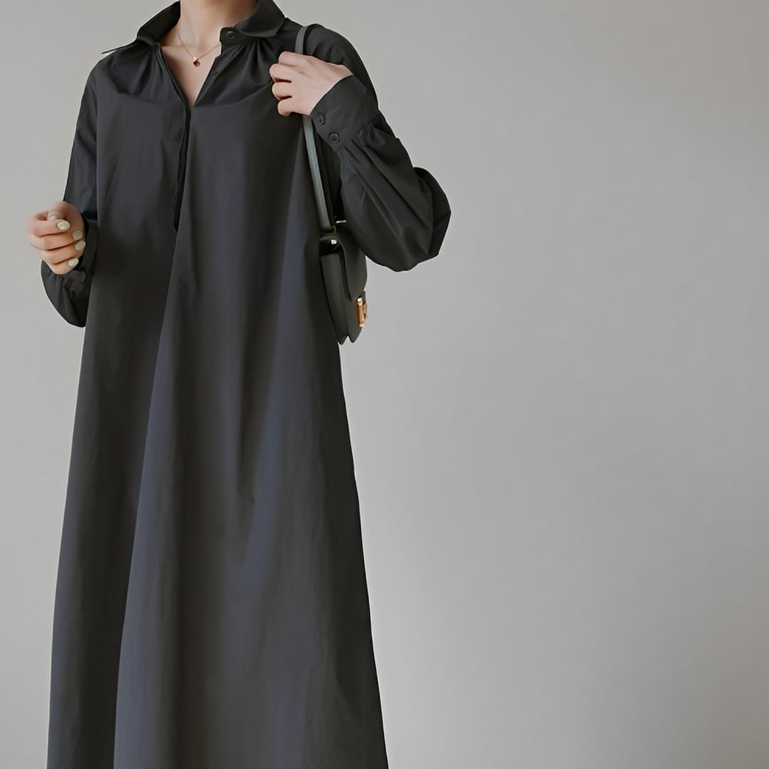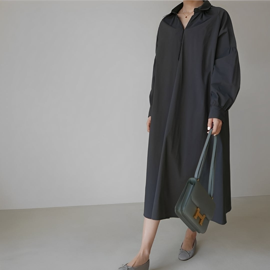 たっぷりとしたAラインシルエットが体のラインを優しく包み、スタイルアップも叶えてくれます。