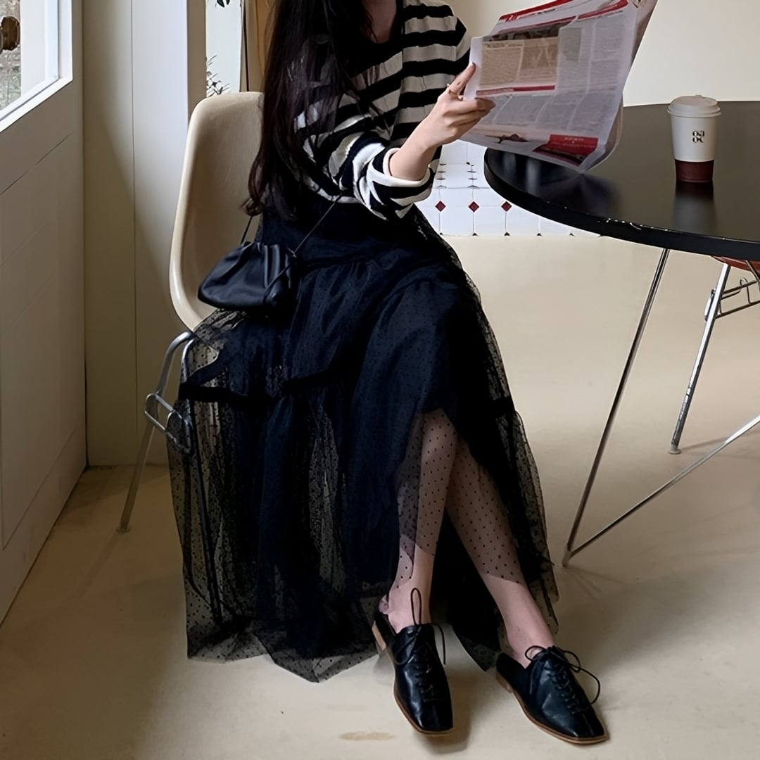 繊細なチュールに小さなドットを散りばめ、立体感あるティアードデザインで華やかな印象に仕上げました。