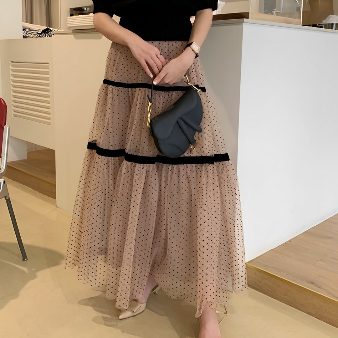 ドットチュールティアードスカート/2col M02060