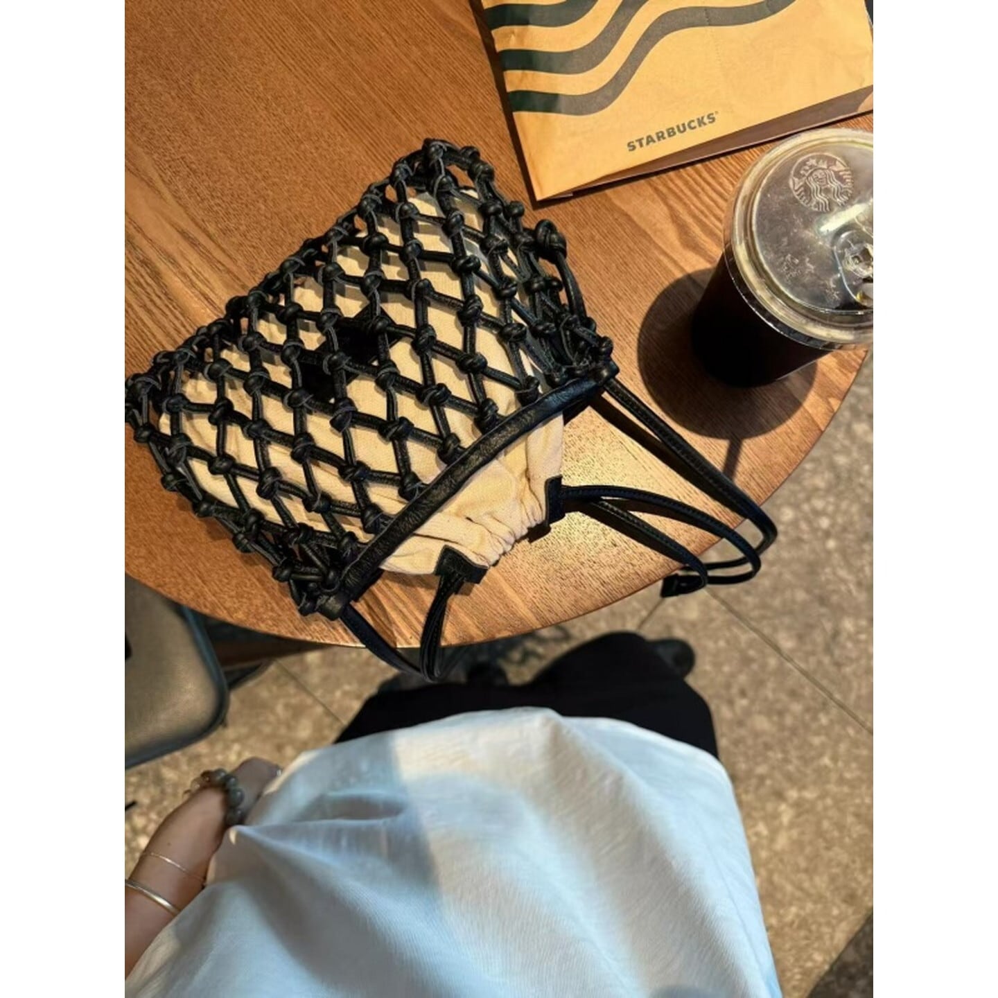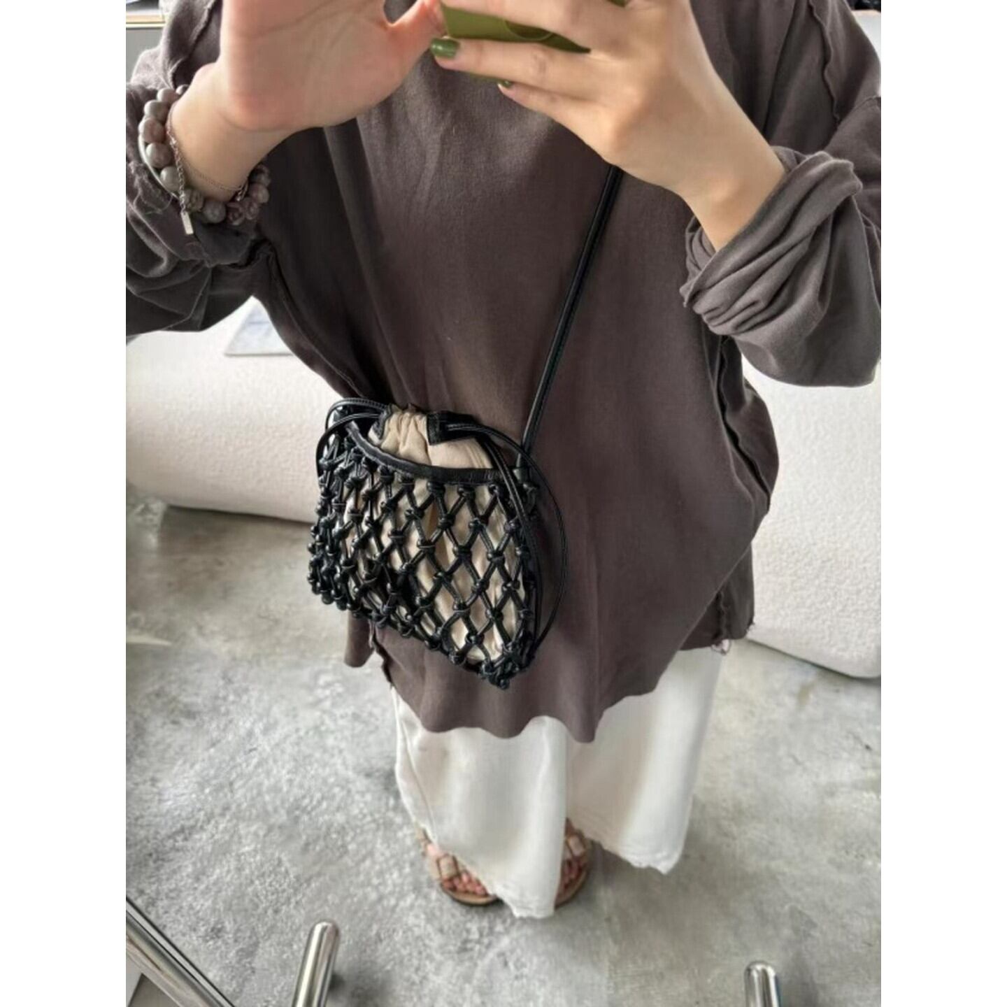 抜け感のある編み目が印象的な、ブラックネットのサコッシュバッグ。