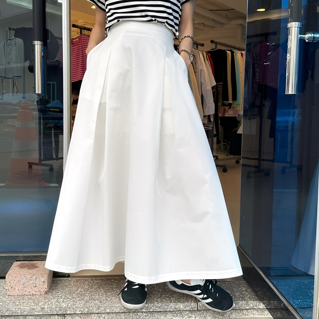フロントタックが立体感を生む、クラシカルな雰囲気のAラインスカート。