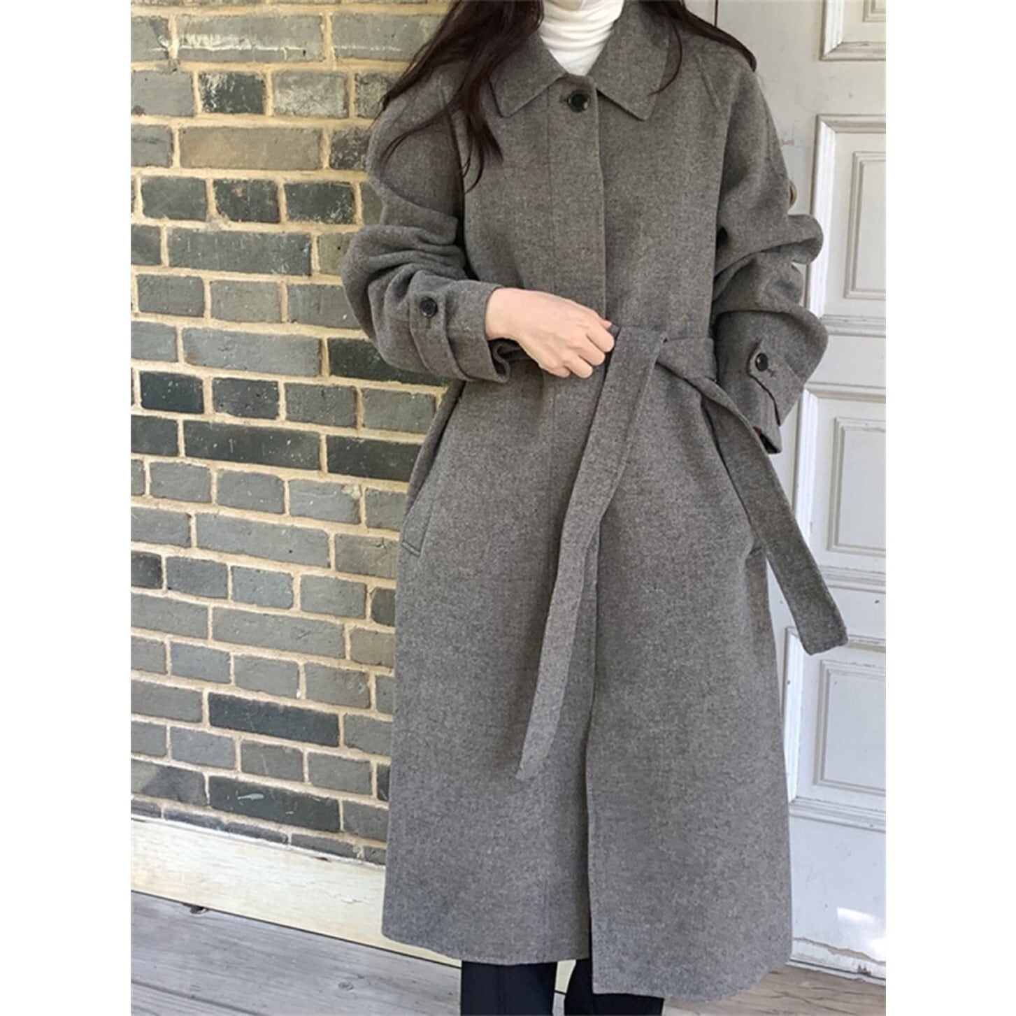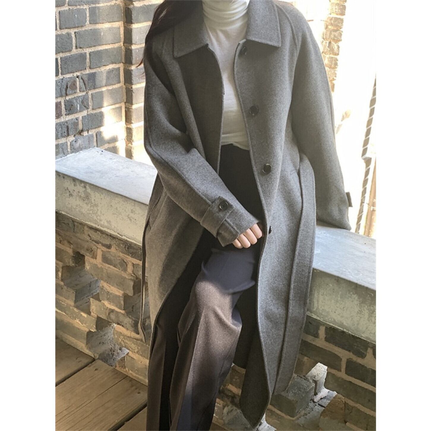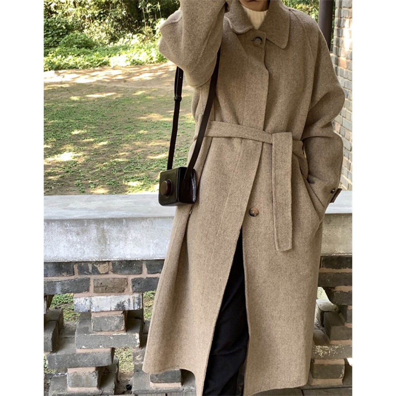 ベルト付きクラシックテーラードロングコート/2col M02491