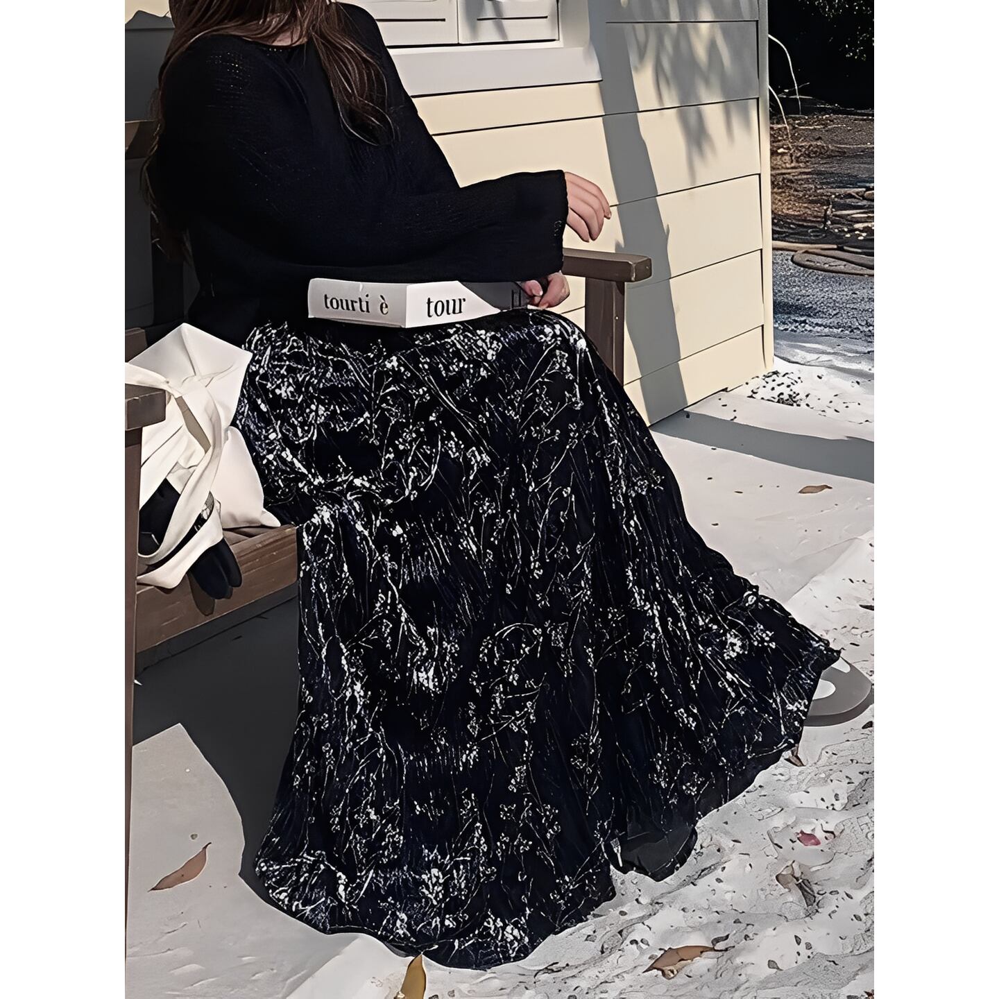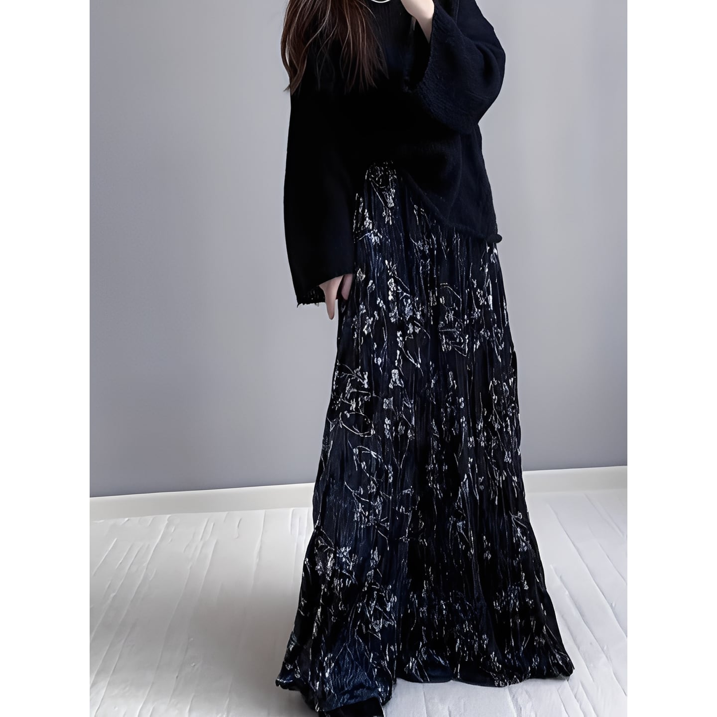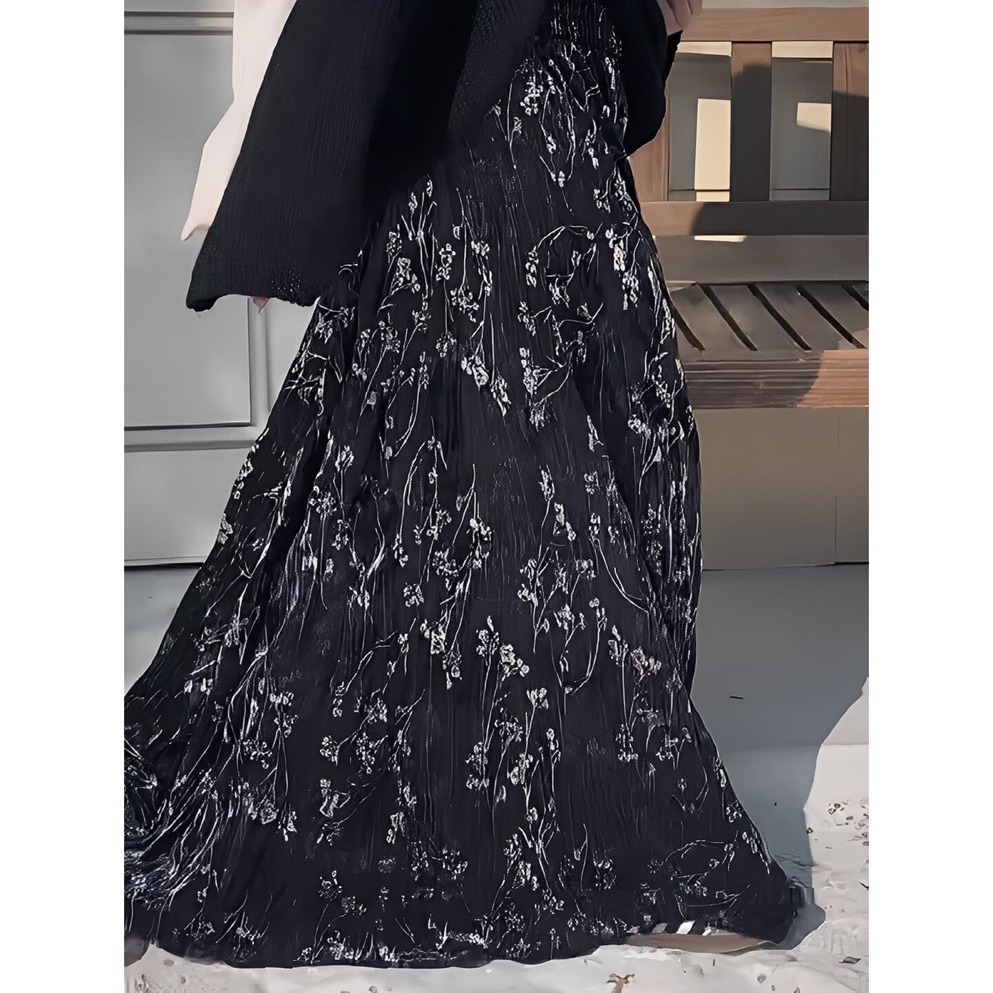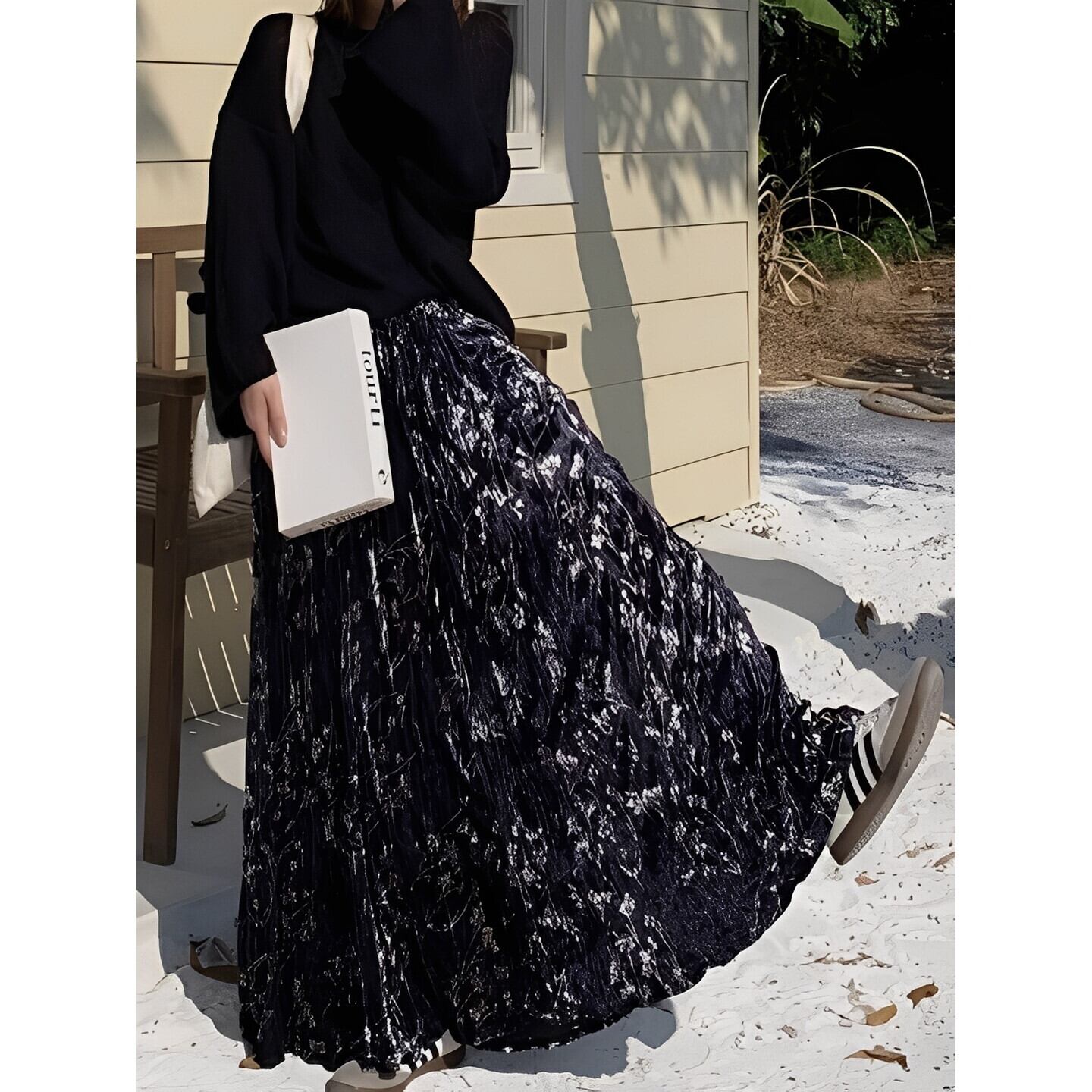 大胆なフローラル柄が目を惹く、ドラマティックな雰囲気のマキシスカート。