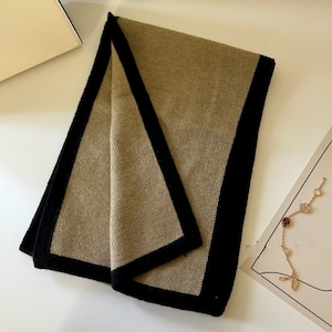 クラシカルな配色が目を惹く、バイカラーデザインのマフラー。