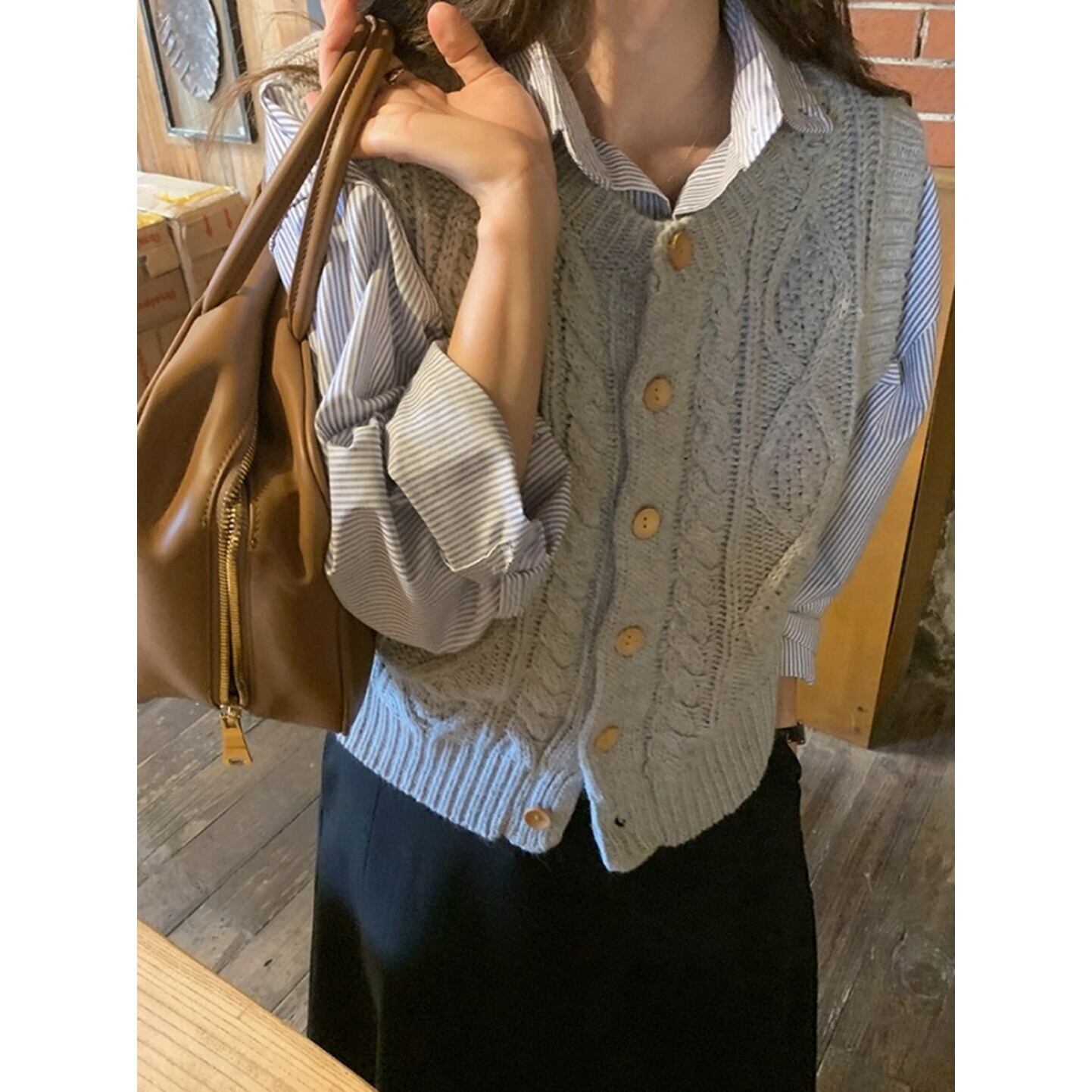 クラシックケーブル編みニットベスト/2col M02530