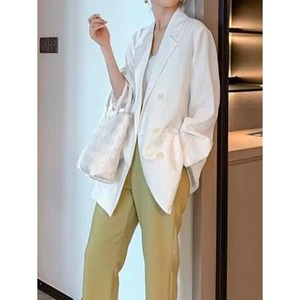 ダブルボタンがクラシカルな印象を与える、オーバーサイズジャケット。
