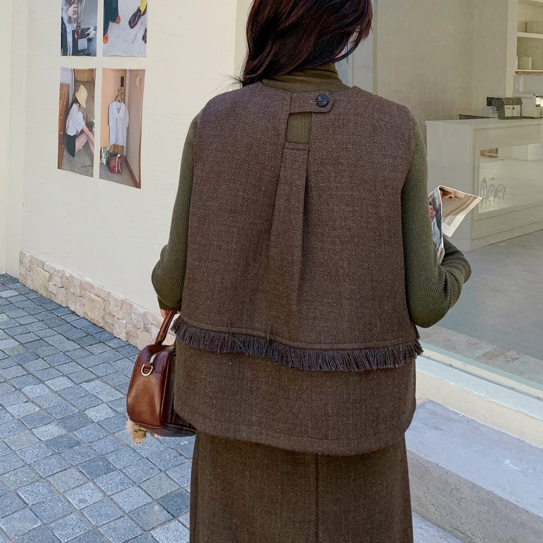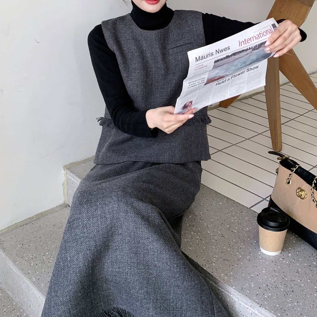 モダンクラシック 秋冬ベスト&ロングスカートセットアップ/2col M02519