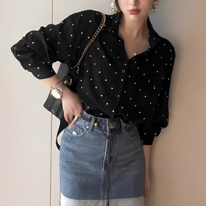 【M~4XL】モノトーンポルカドットシャツ M02525