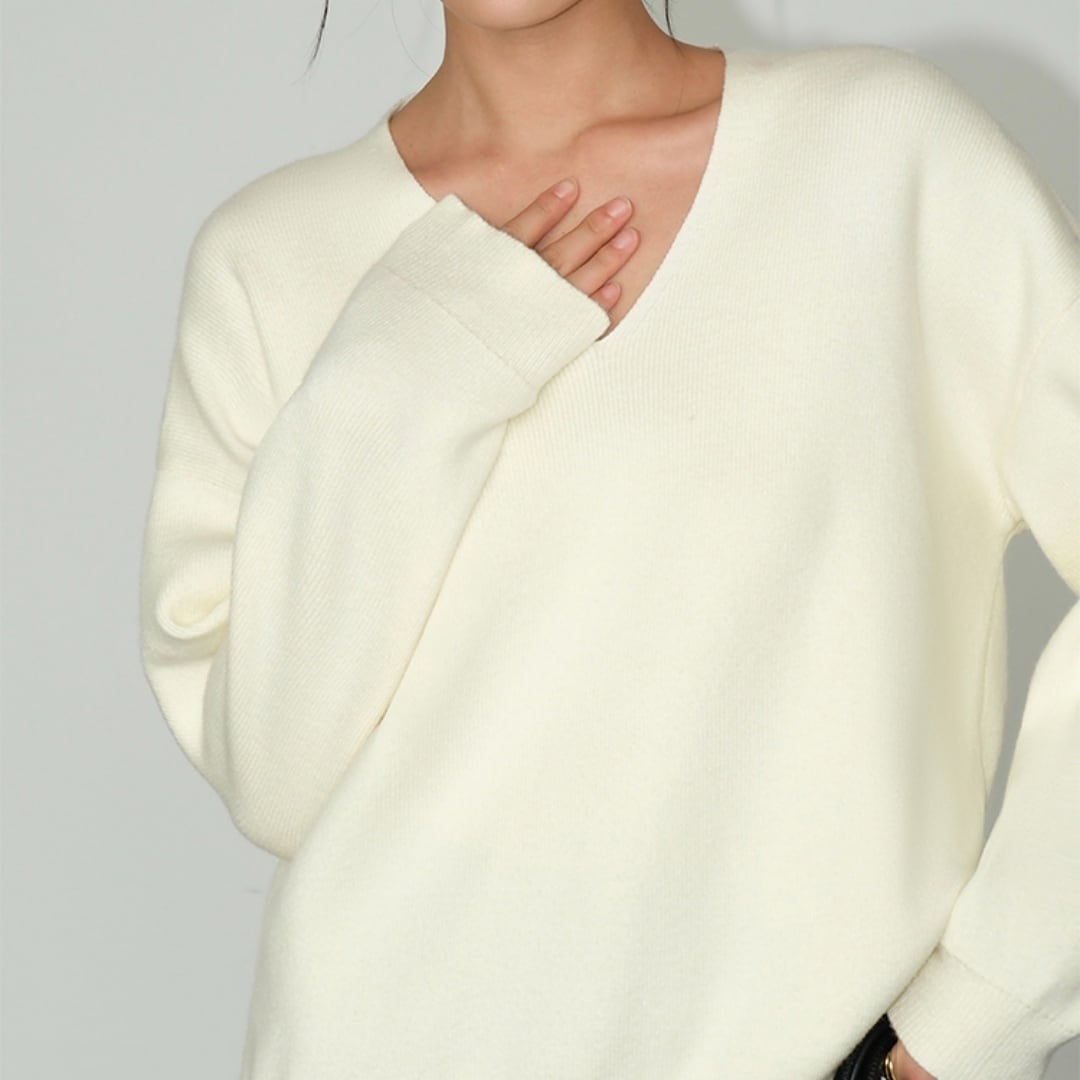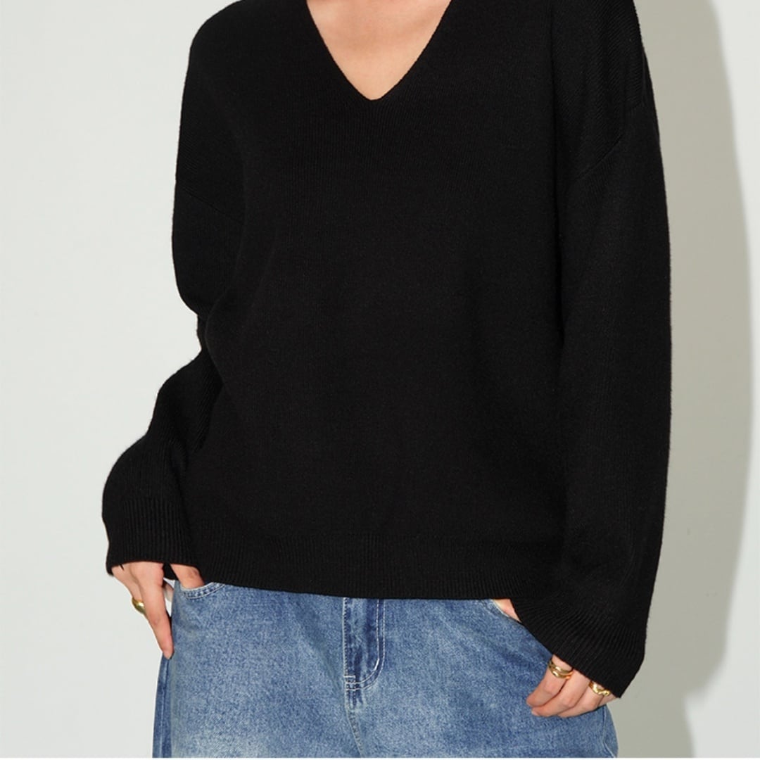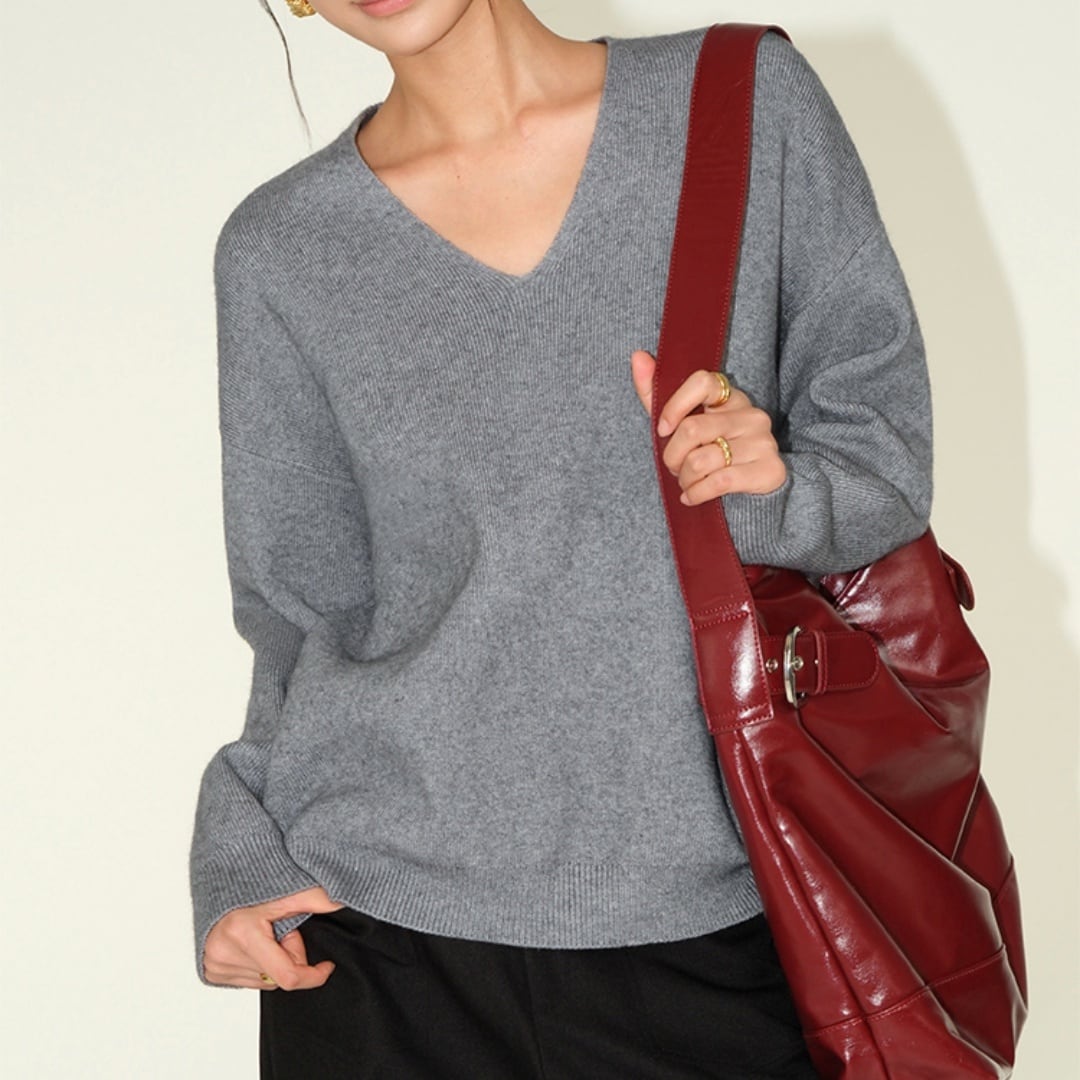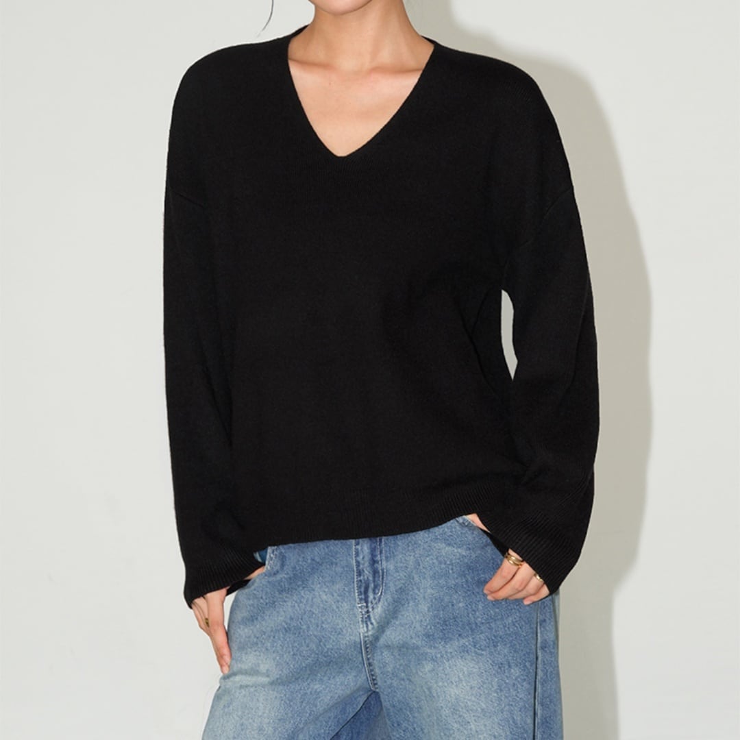 シンプルVネックリラックスニットプルオーバー/3col M02537