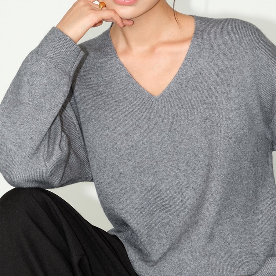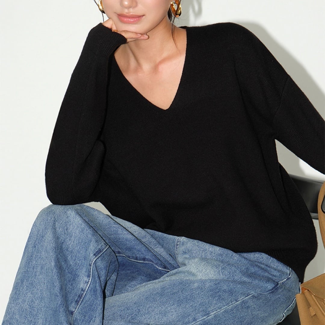 シンプルなVネックが大人の抜け感を演出する、リラックスニットプルオーバー。