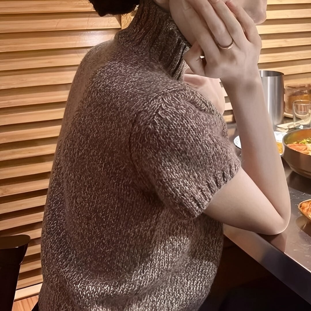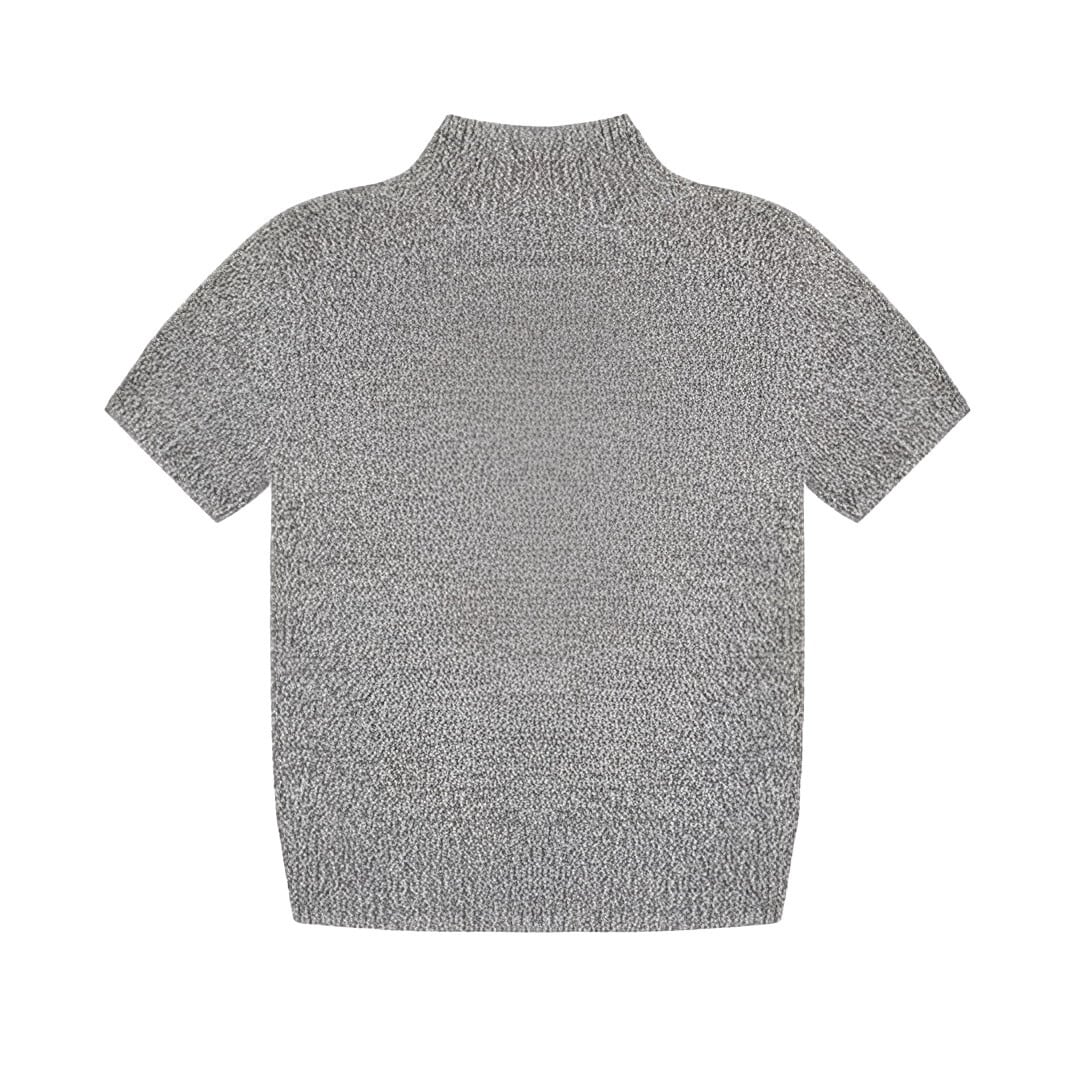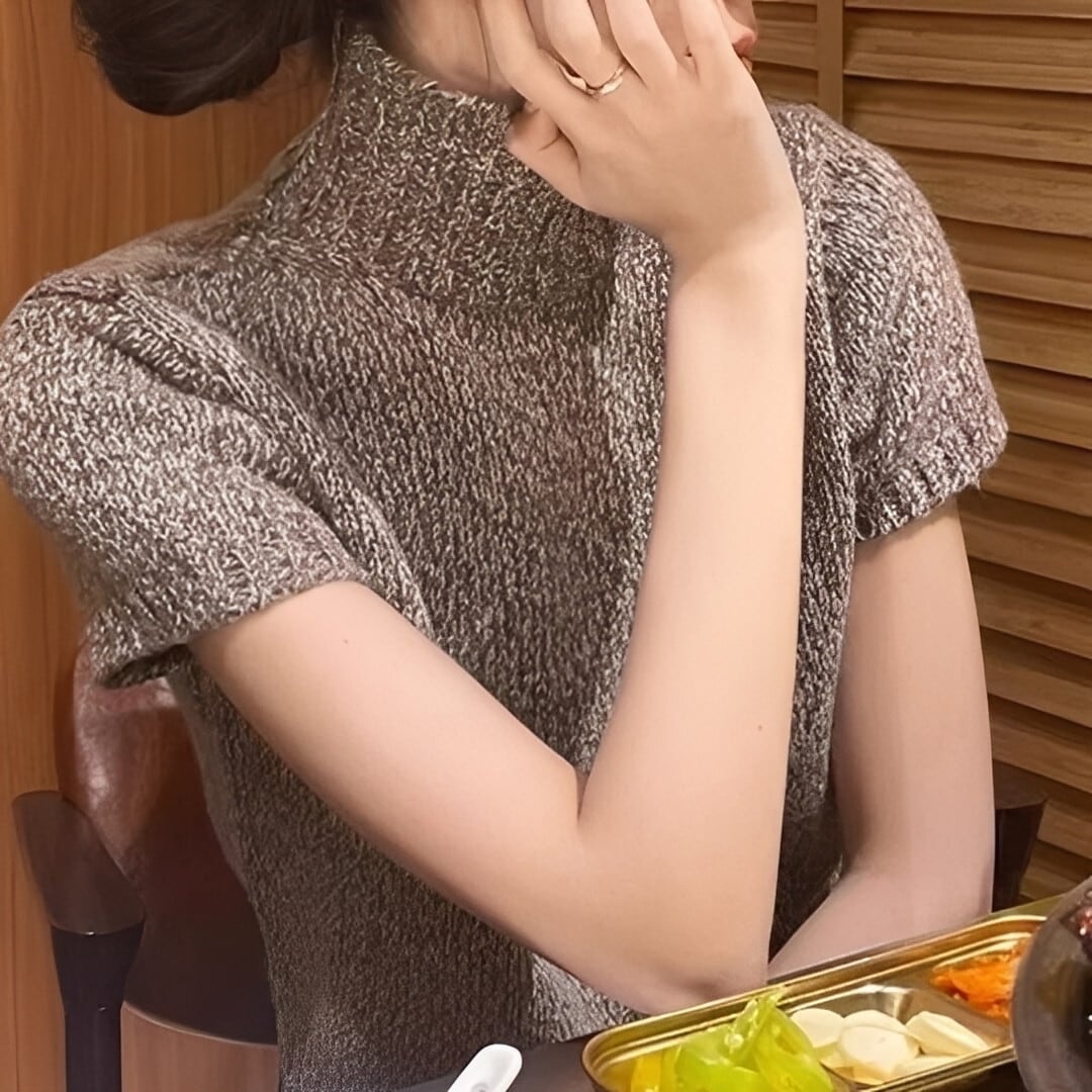 すっきりとしたハイネックが上品な印象を与える、半袖ニット。