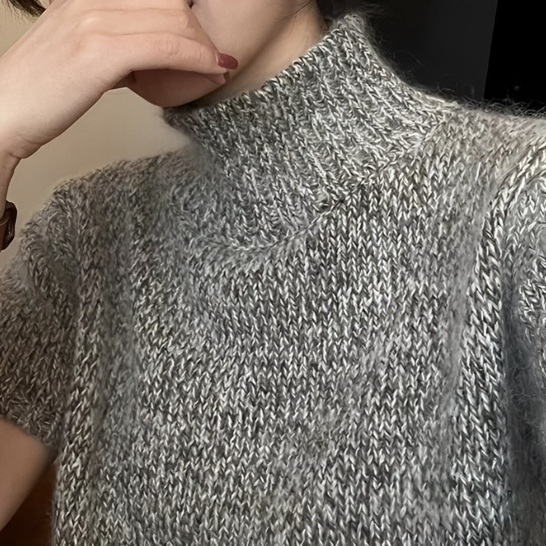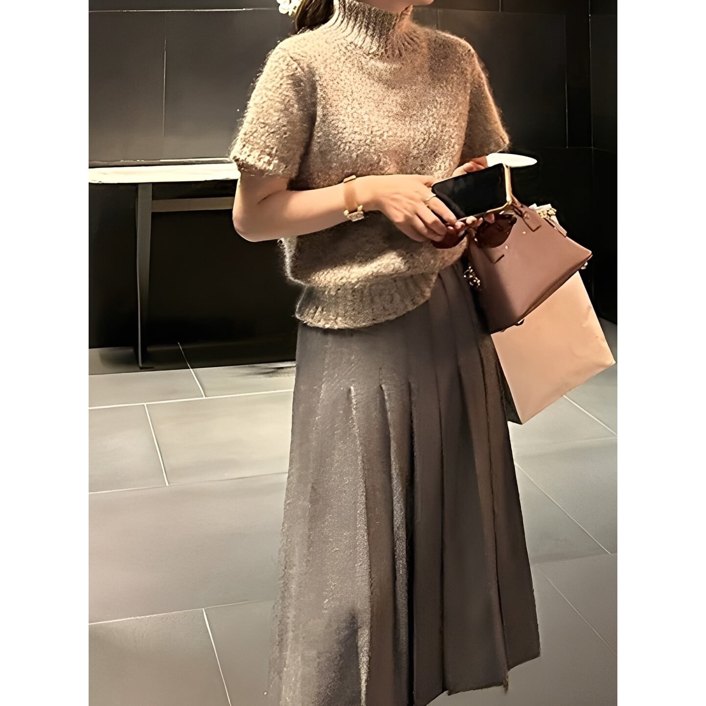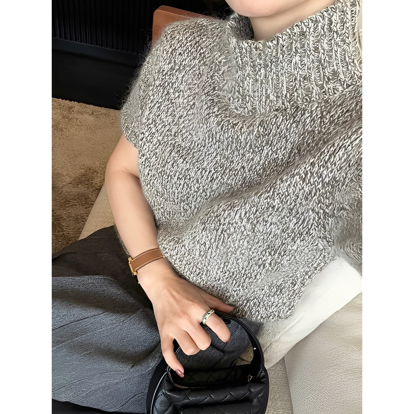 すっきりとしたハイネックが上品な印象を与える、半袖ニット。