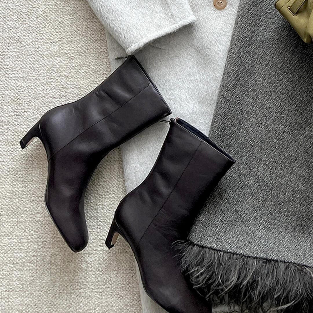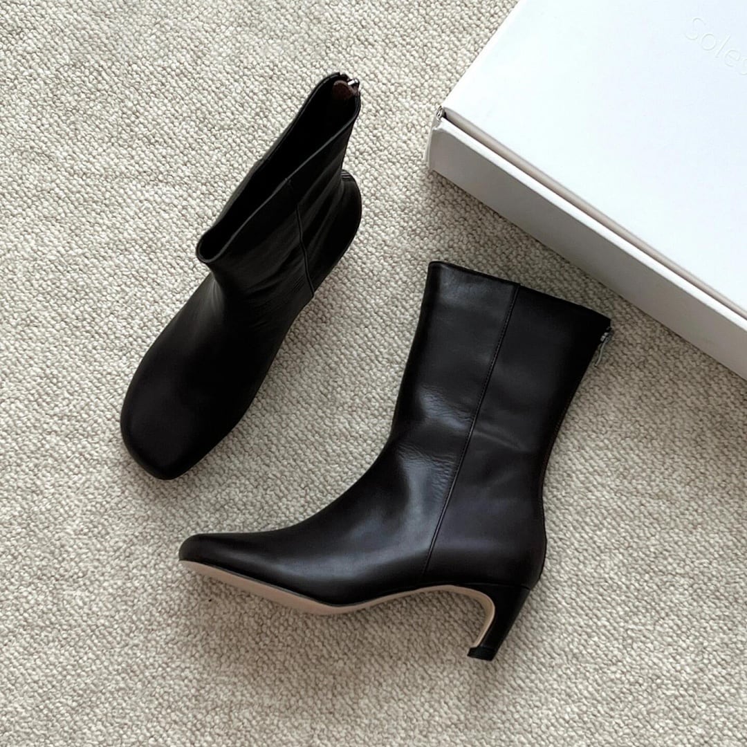 無駄を削ぎ落としたスクエアトゥが洗練された印象を与える、ミニマルアンクルブーツ。