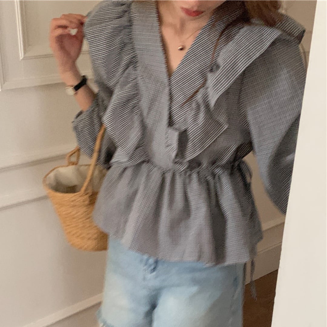 クラシカルなチェック柄と程よいボリューム感が、大人の可愛げを引き立てる一枚。