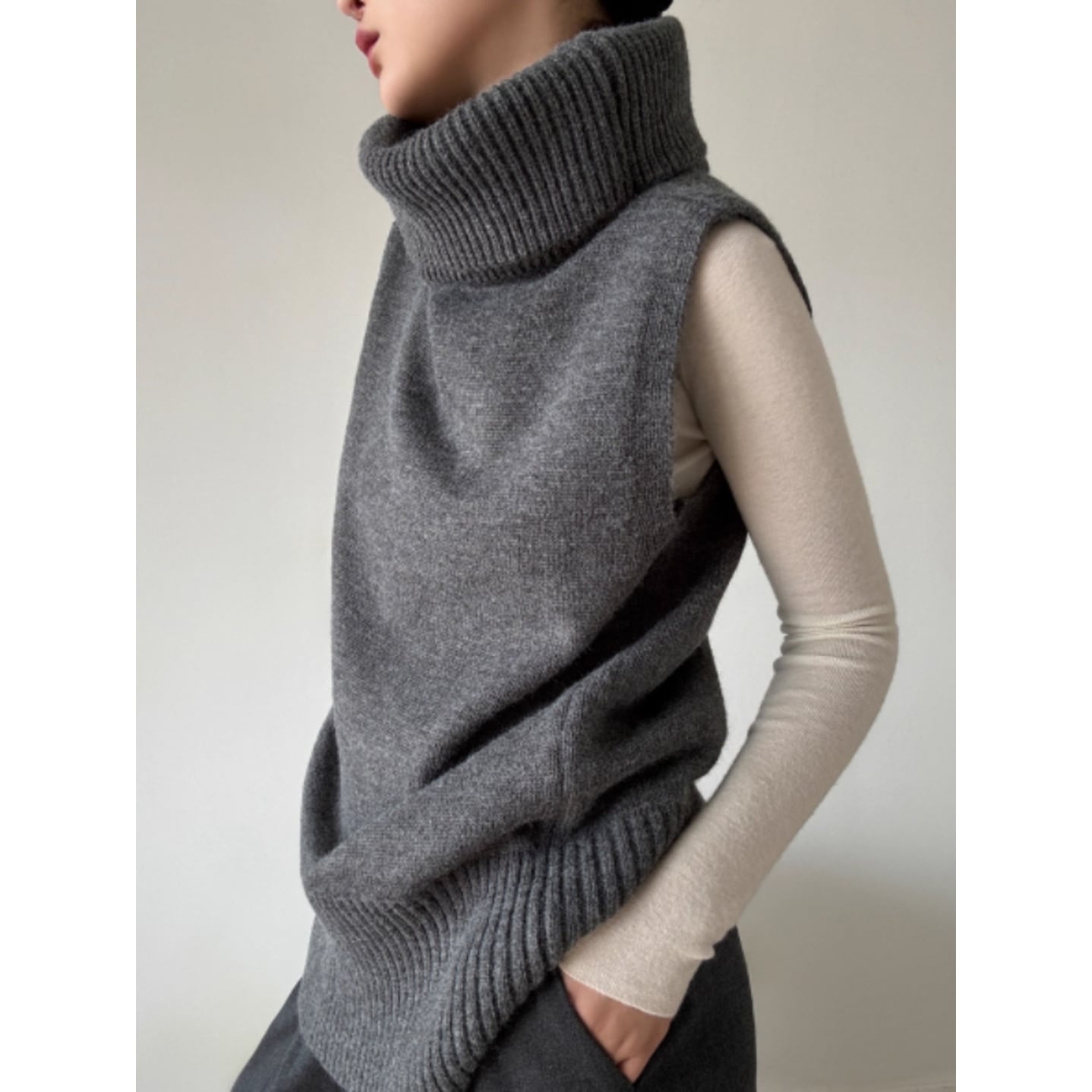 立体感のあるボリュームネックが顔まわりを華やかに見せる、旬のニットベスト。