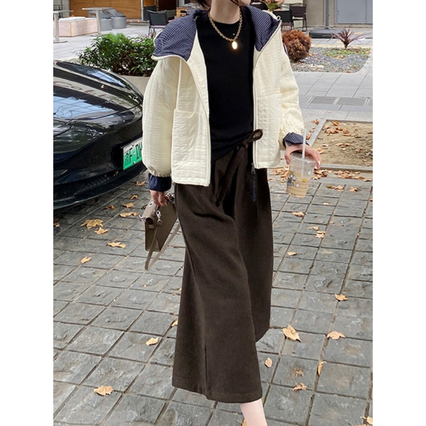 落ち感のある素材で広がりすぎず、きちんと感と抜け感を両立◎
