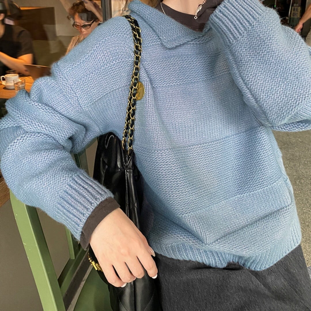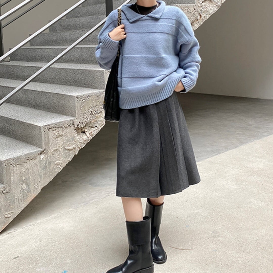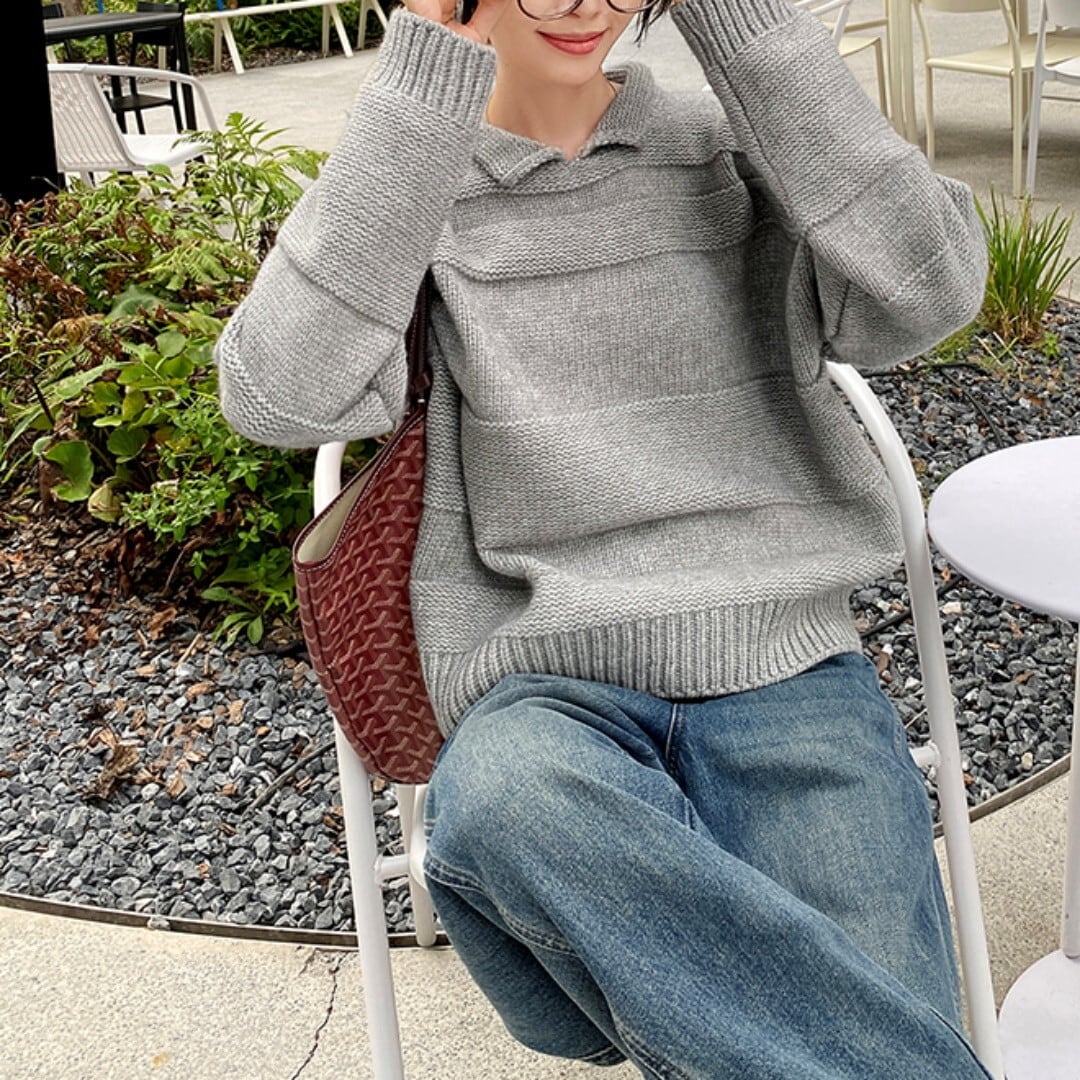 立体感のある編地が印象的な、大人のボーダーテクスチャーセーター。