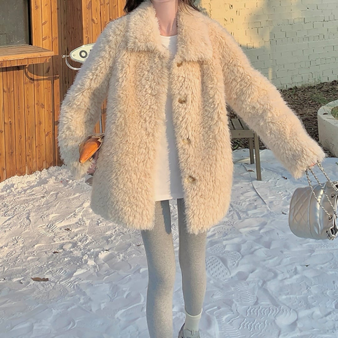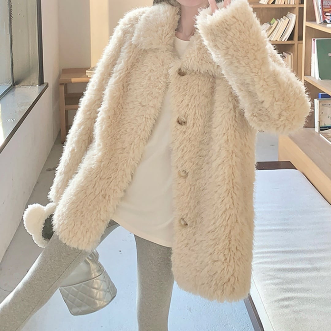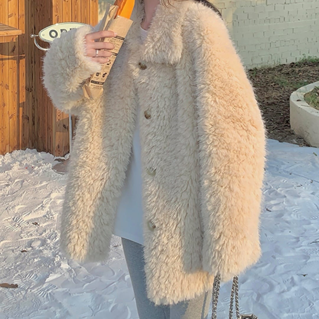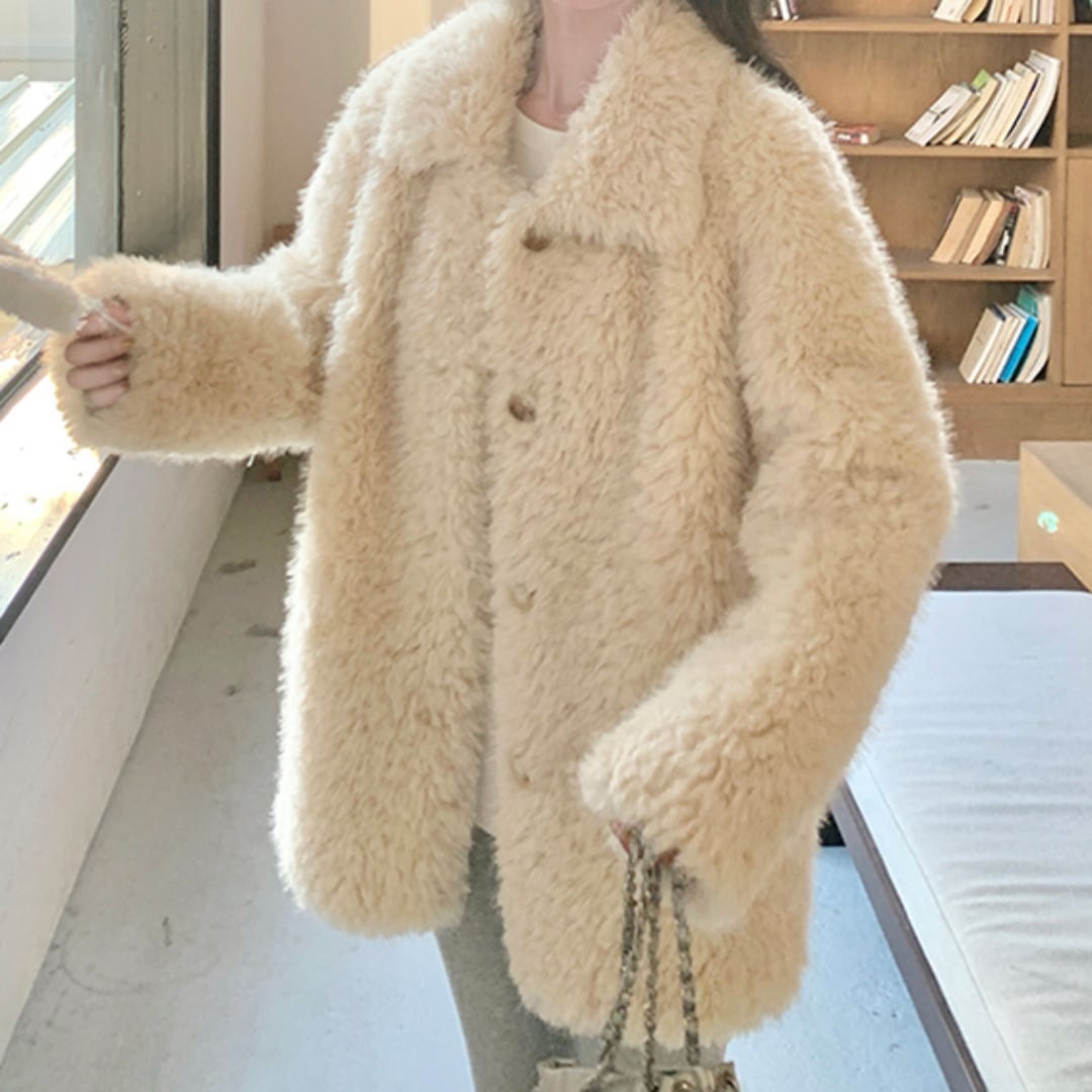 ふんわりとした質感が魅力の、リッチ感漂うフェイクファーコート。