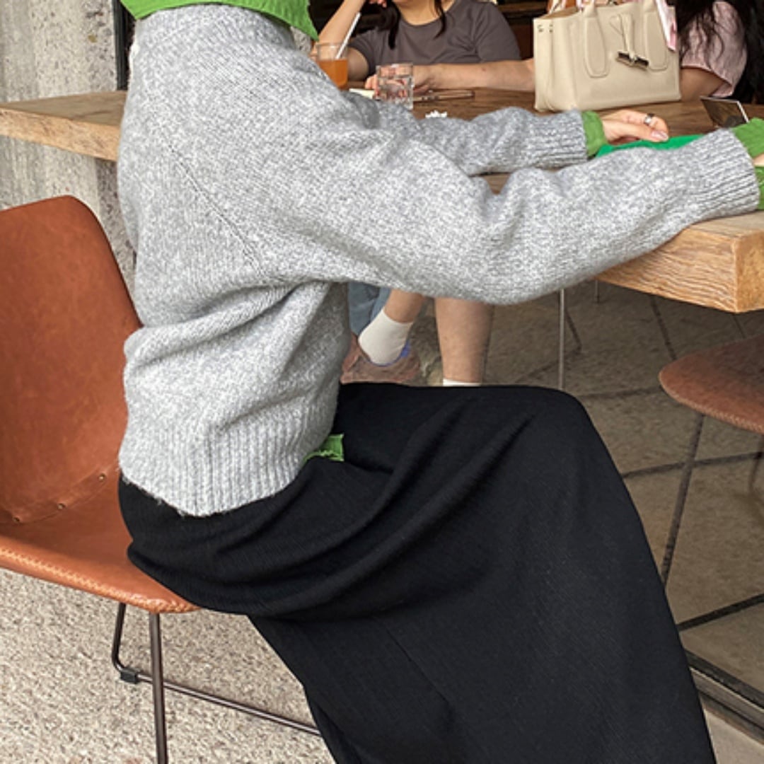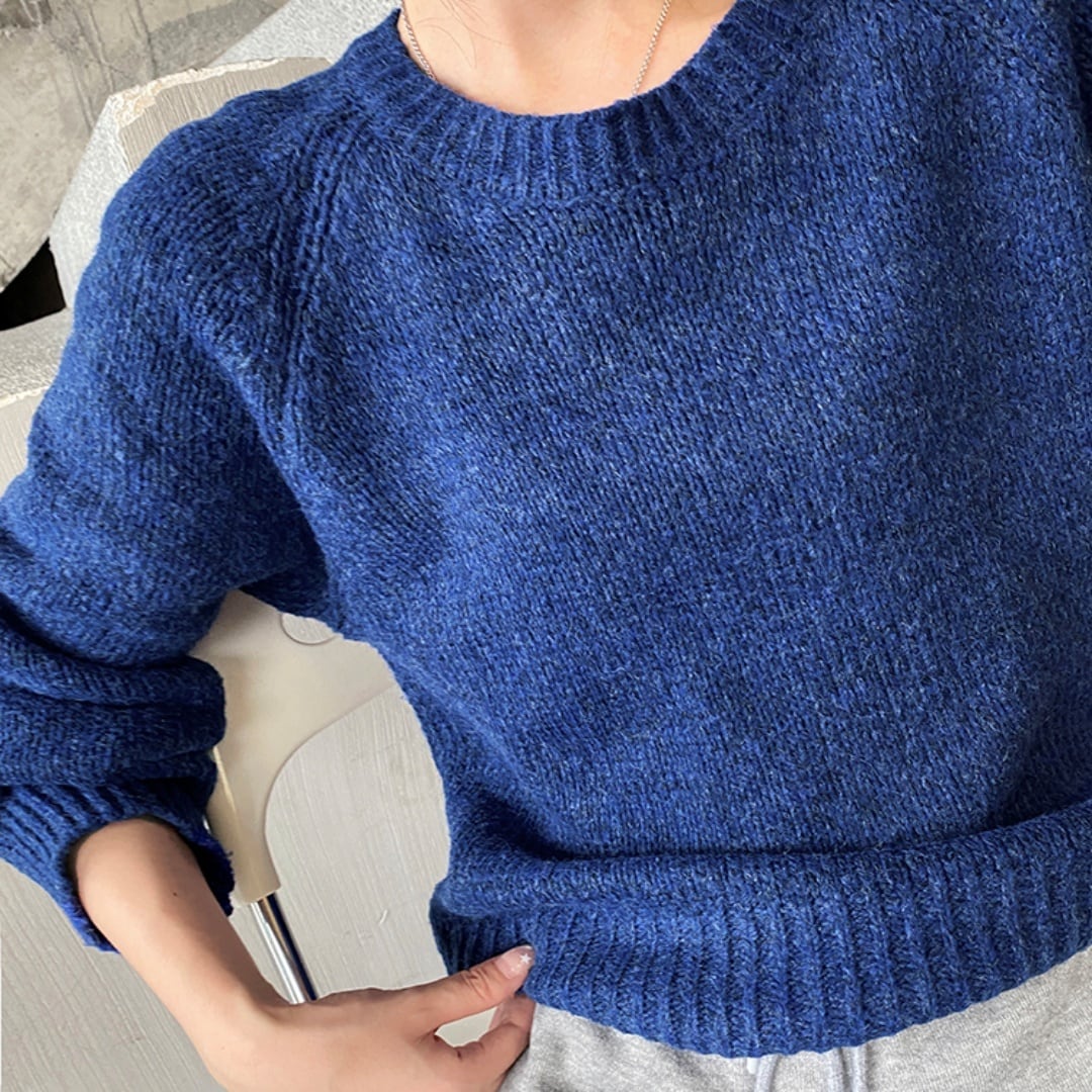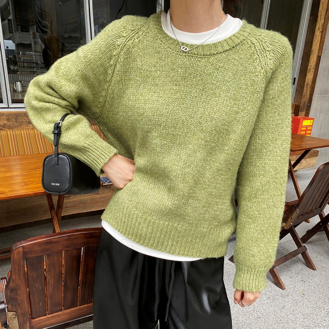 どんなコーデにもなじむ、ベーシックカラーのクルーネックニット。