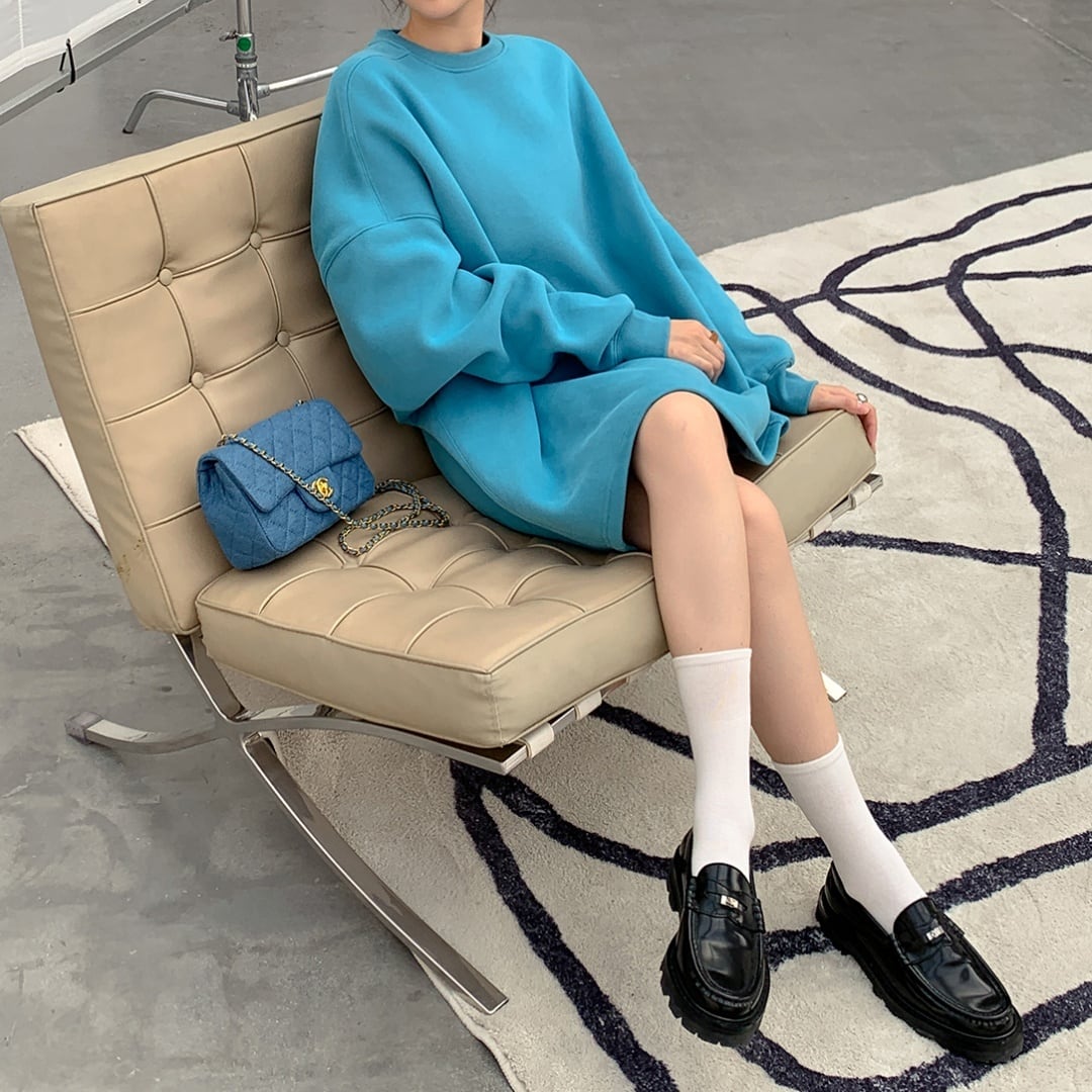 ゆったりシルエットが今っぽい、大人のためのオーバーサイズスウェットワンピ。