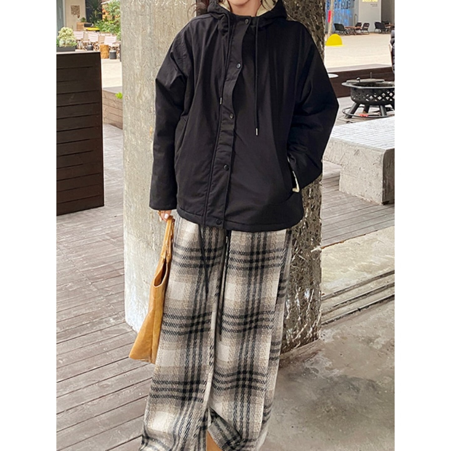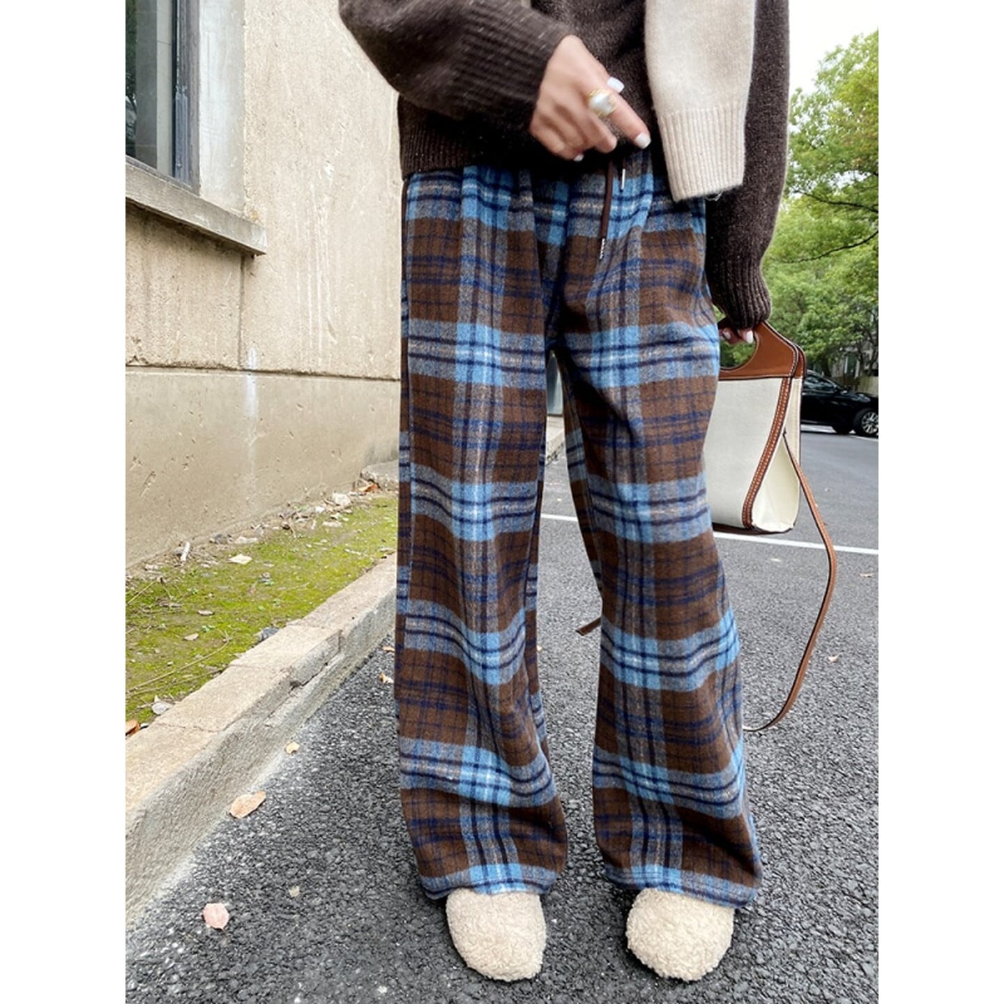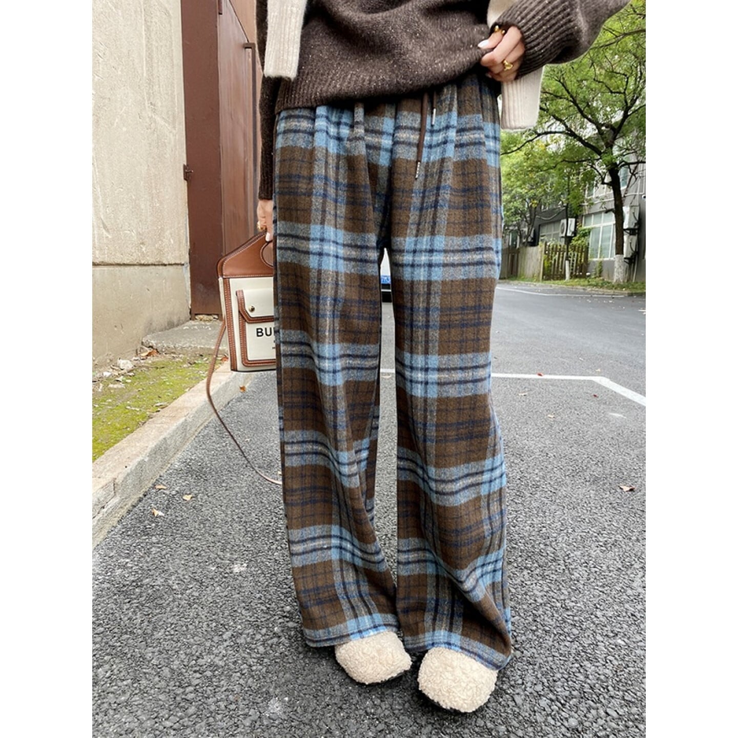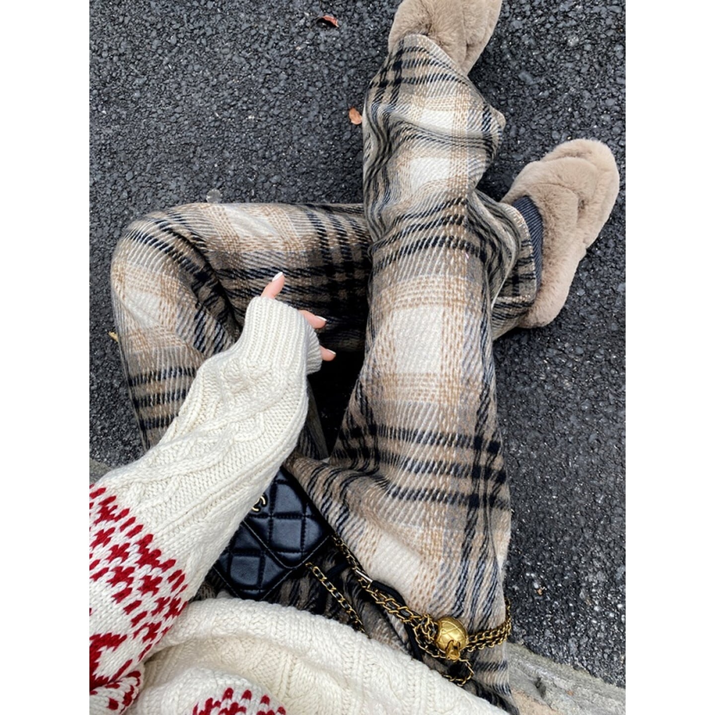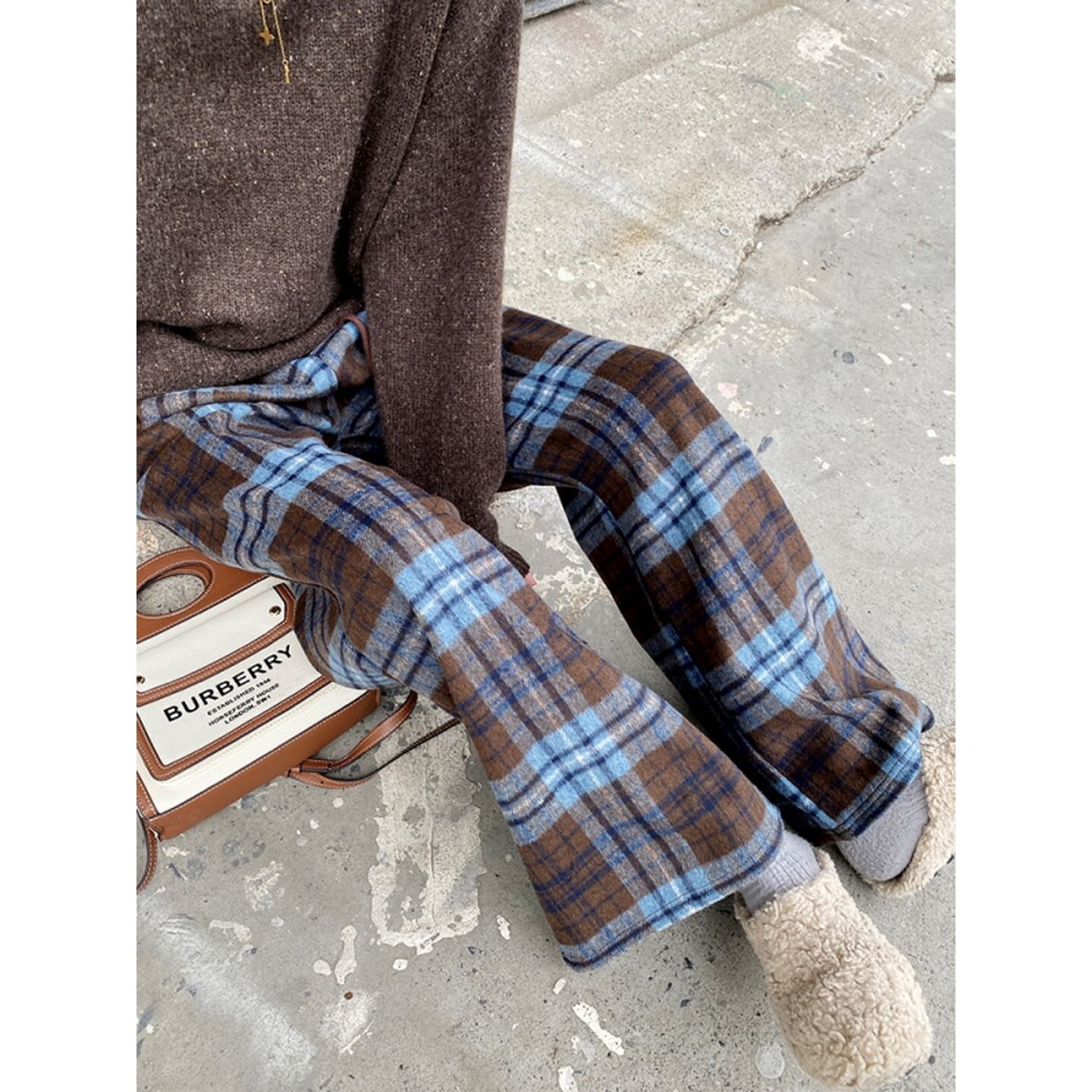あたたかみのある起毛素材とレトロなチェック柄が魅力の大人パンツ。