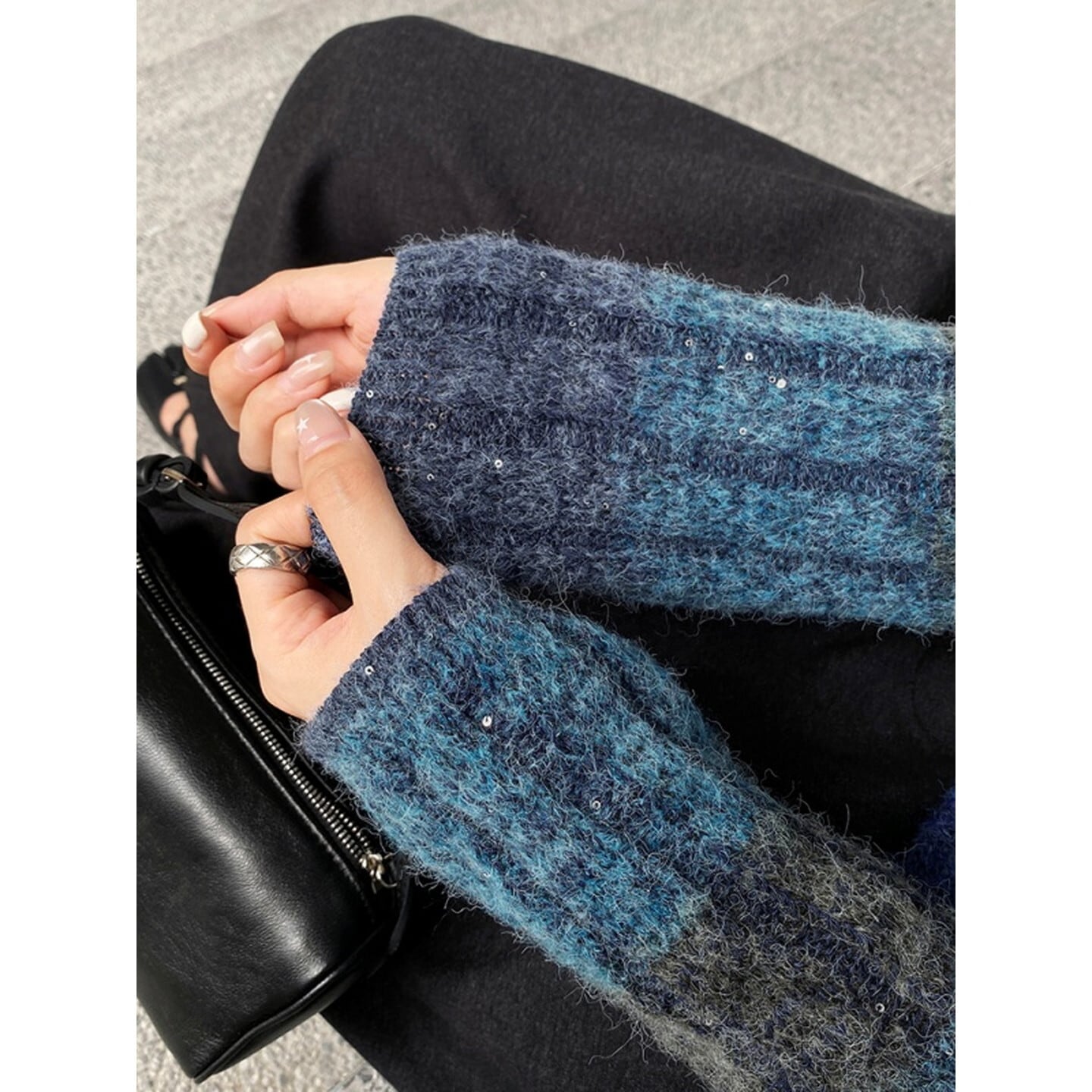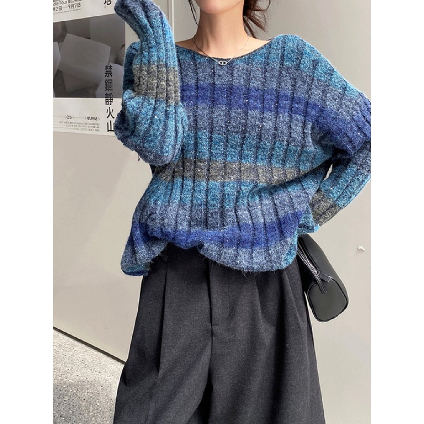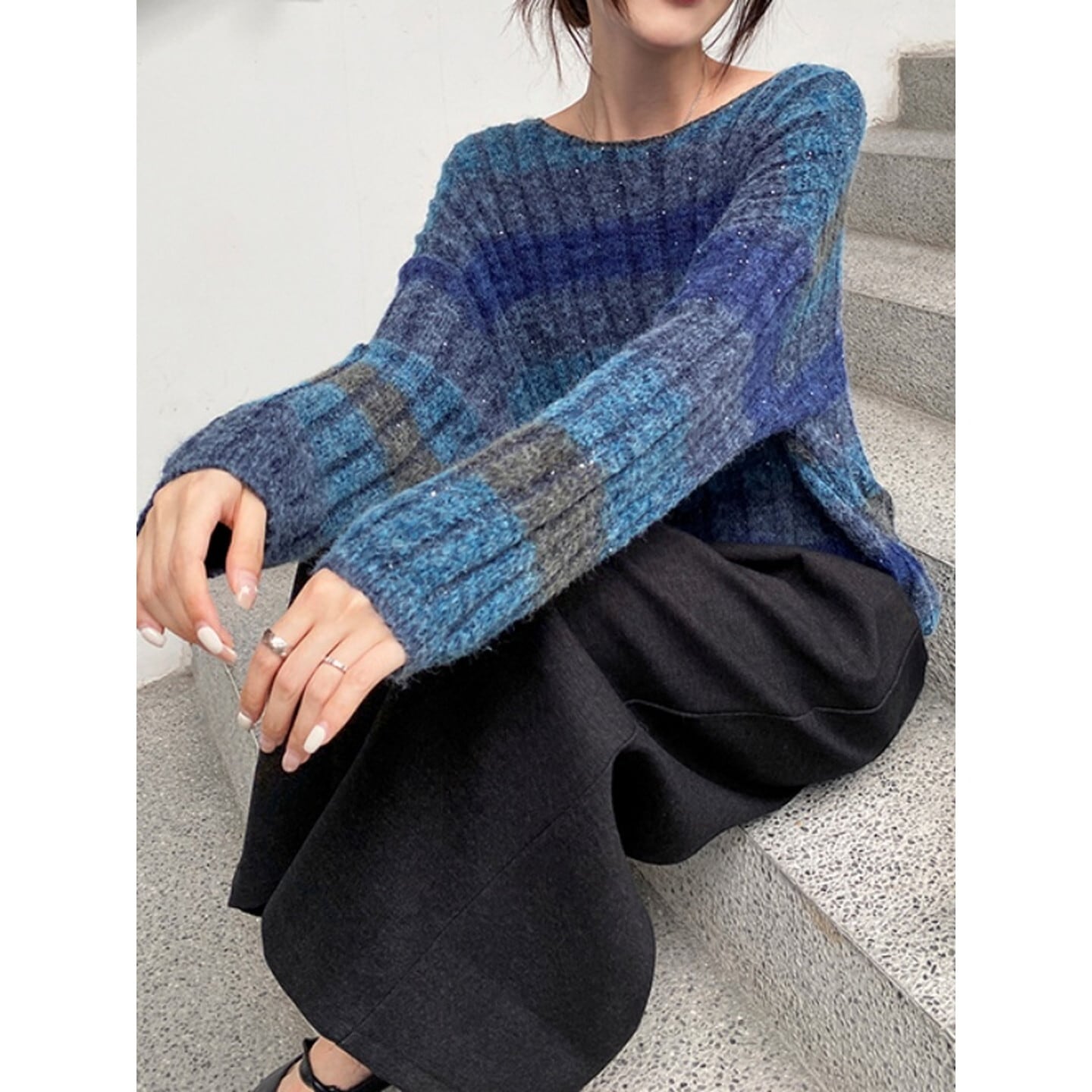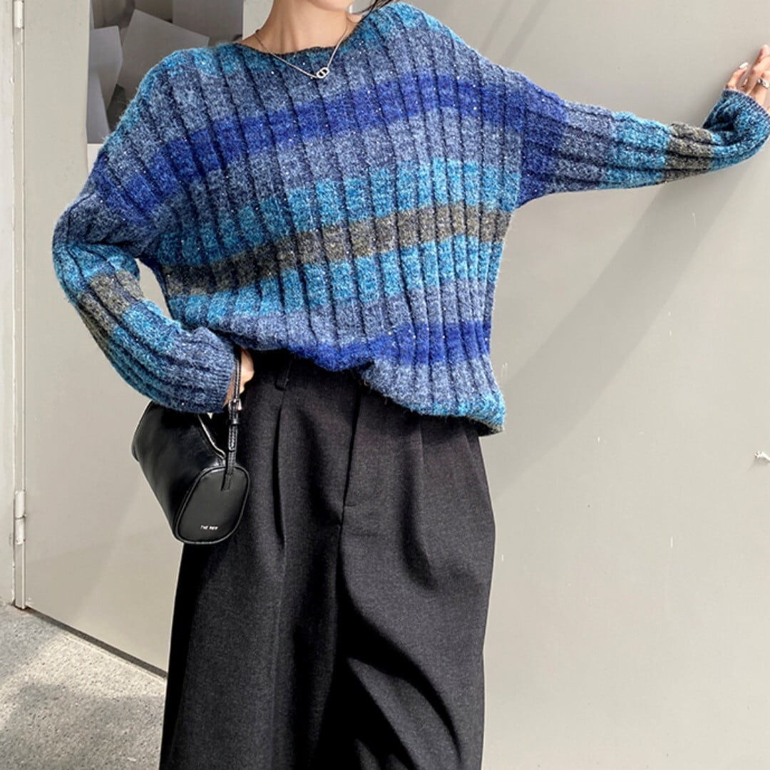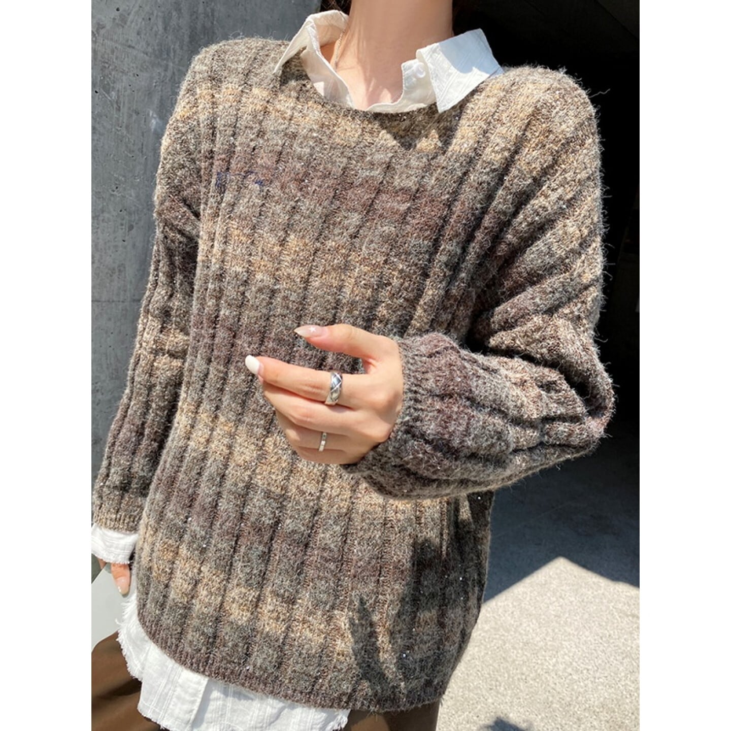 美しい色の移ろいが目を惹く、リブグラデーションニット。