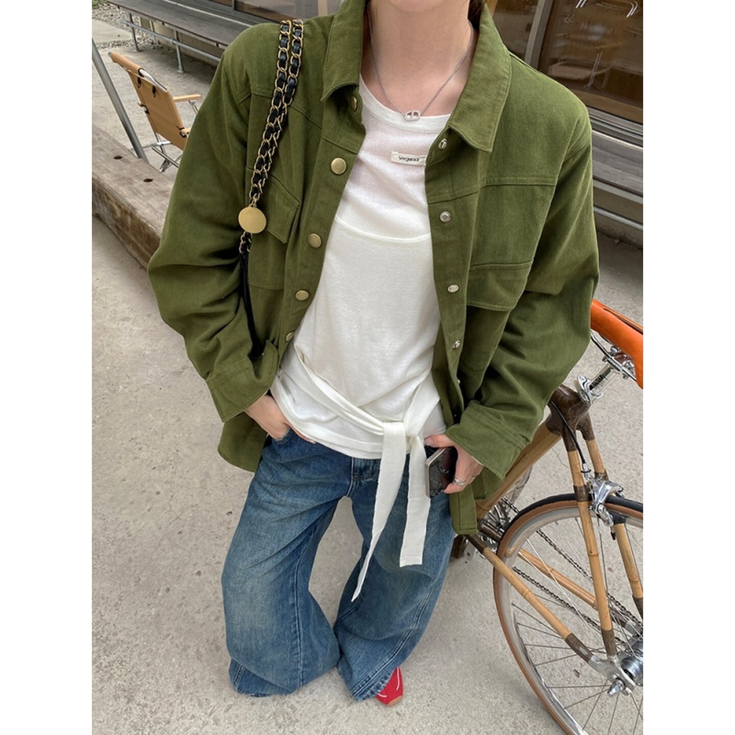 デニムはもちろん、スカートやワンピースとも好相性で幅広く活躍します。
