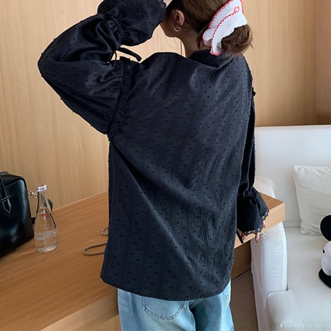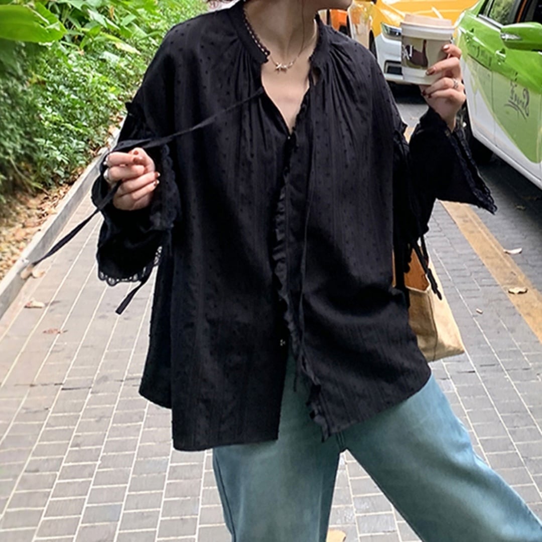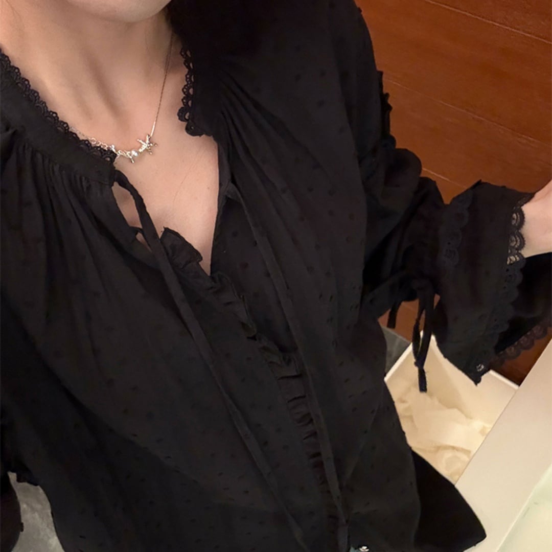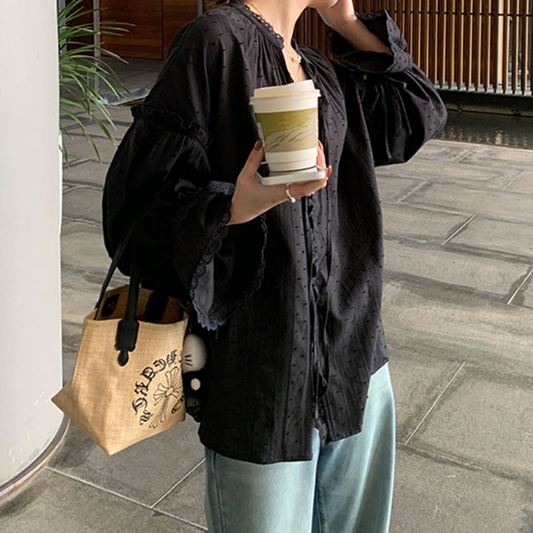 繊細なレースとギャザーがふんわりと女性らしさを引き立てる、エアリーブラウス。