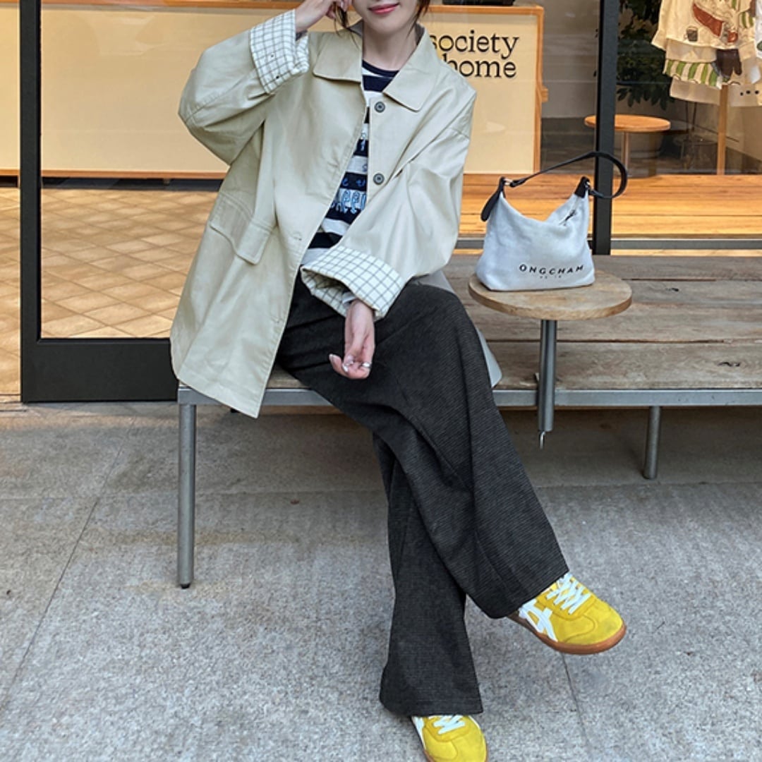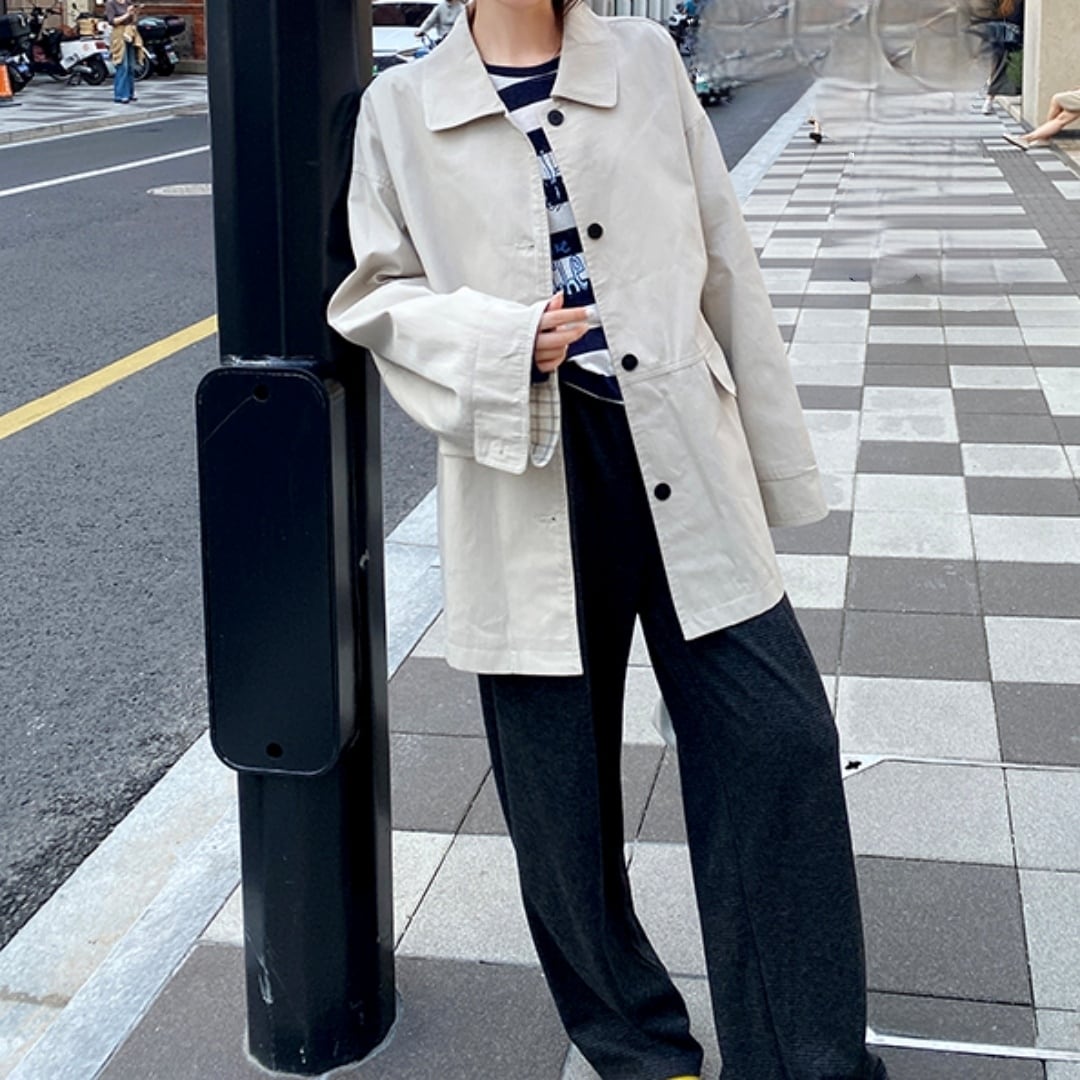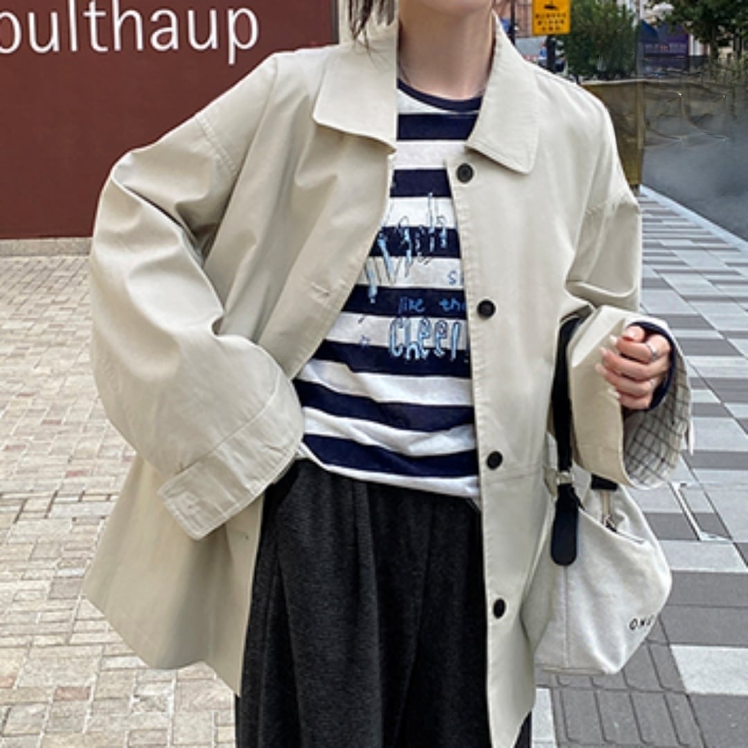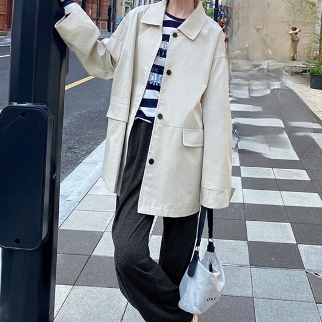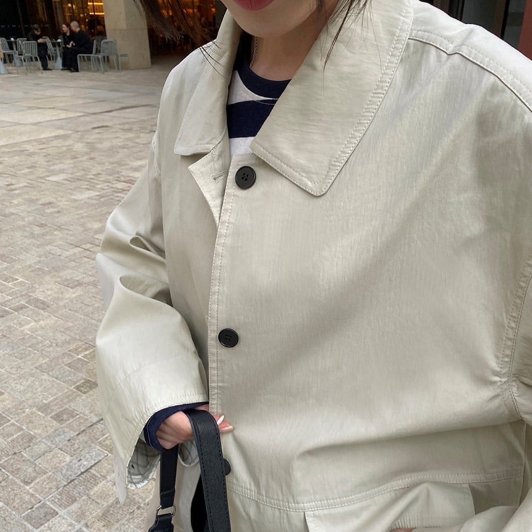 すっきりとしたシルエットが魅力の、ベーシックモードなステンカラージャケット。