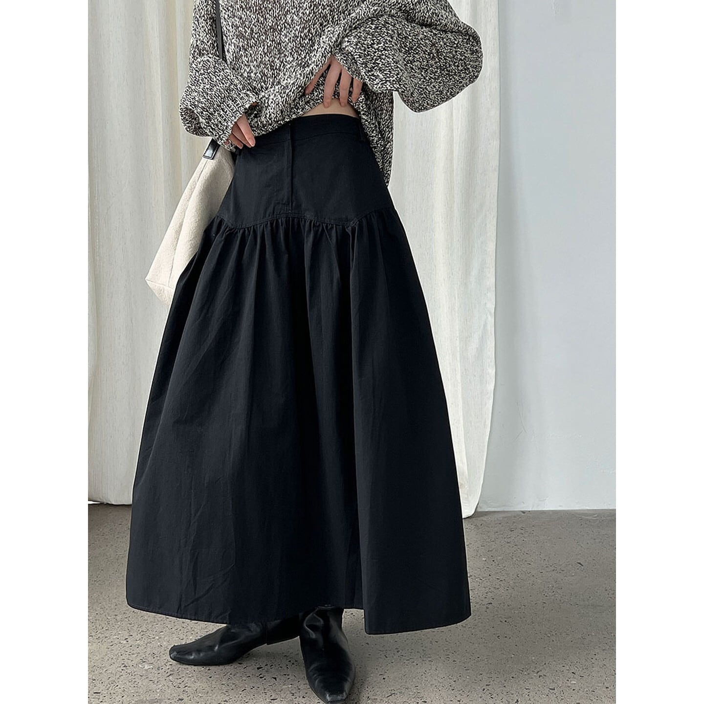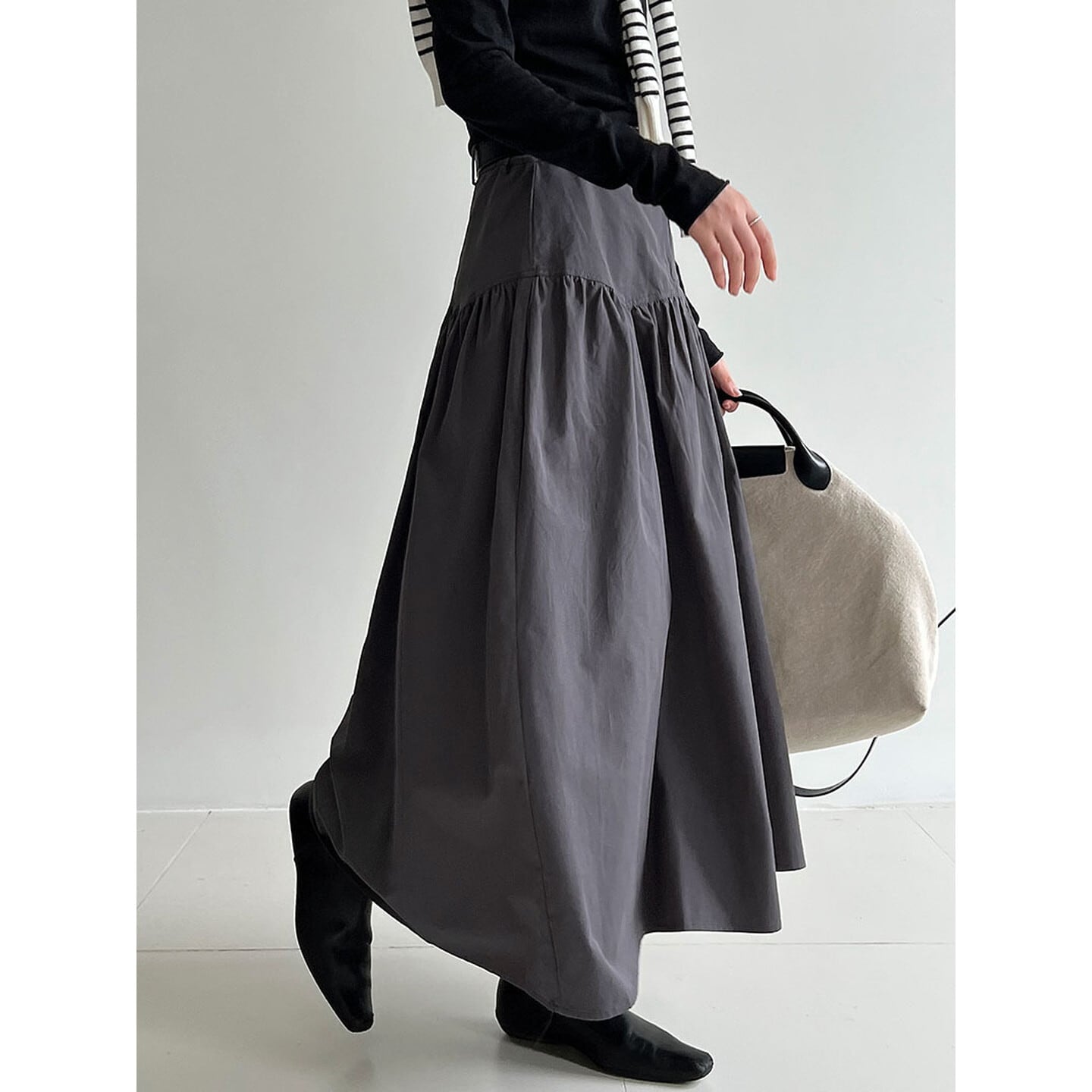 程よいボリューム感と広がりが美しい、ハイウエストギャザースカート。