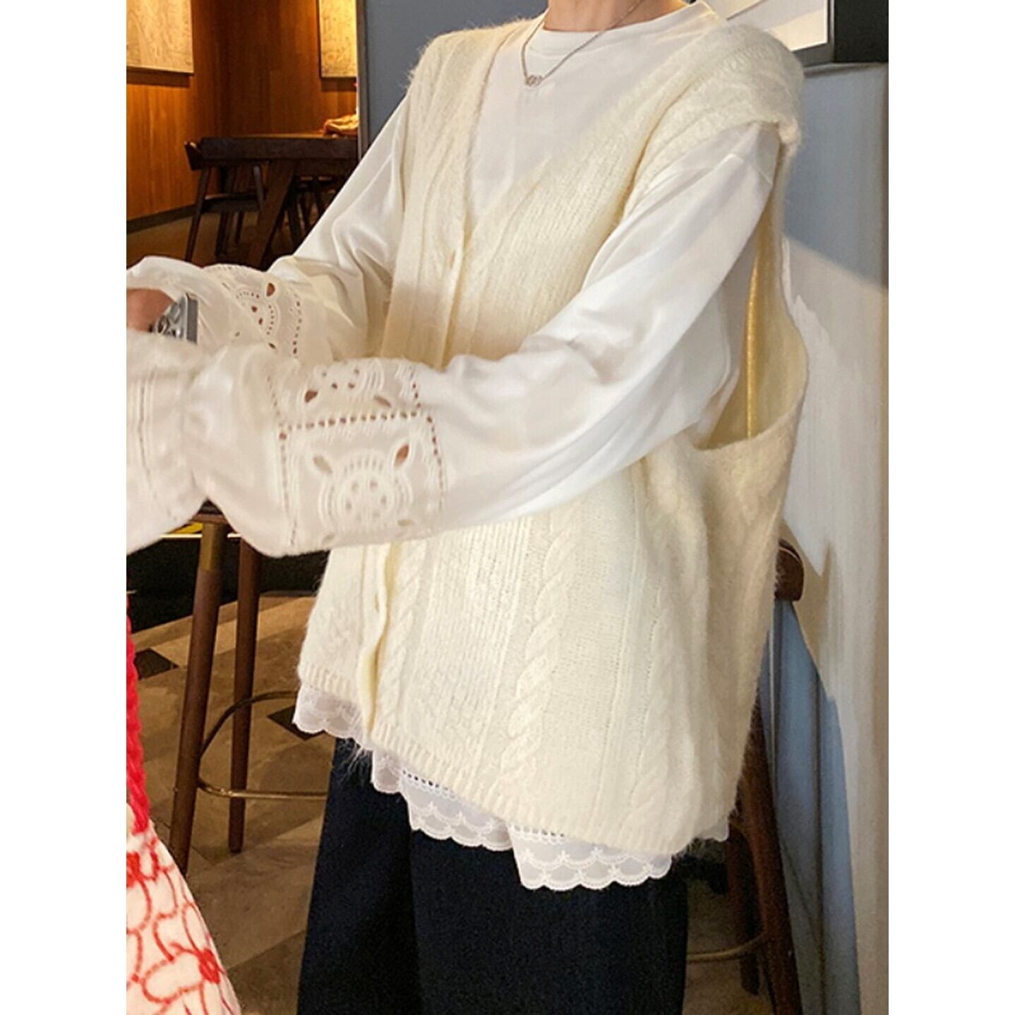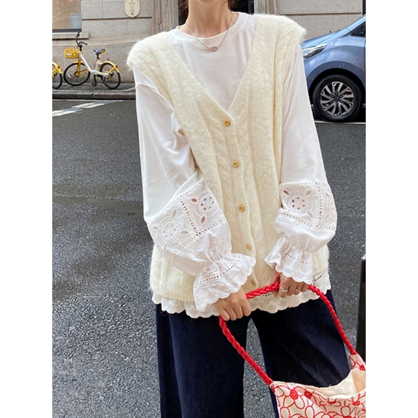 レース×カットソー クラシカルフリルブラウス M02717