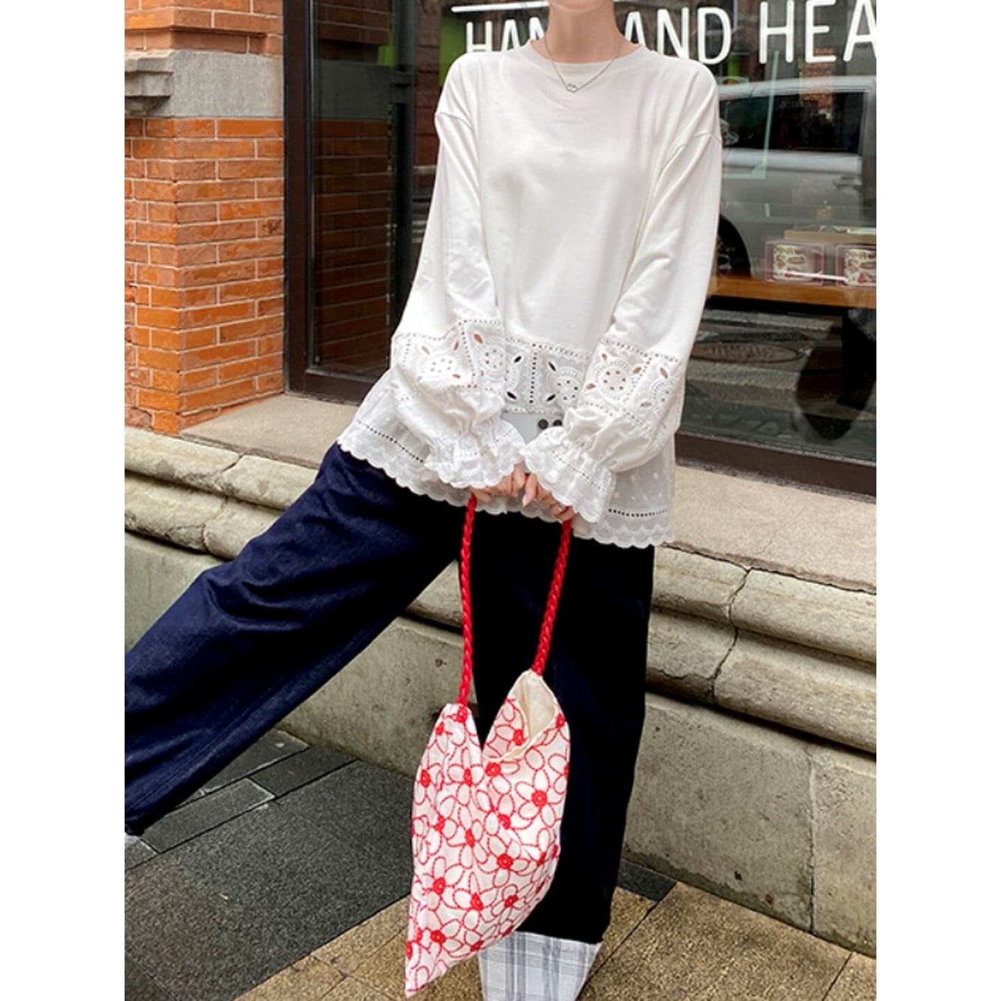 カットソー素材で着心地もよく、甘さの中にほどよい抜け感をプラス◎