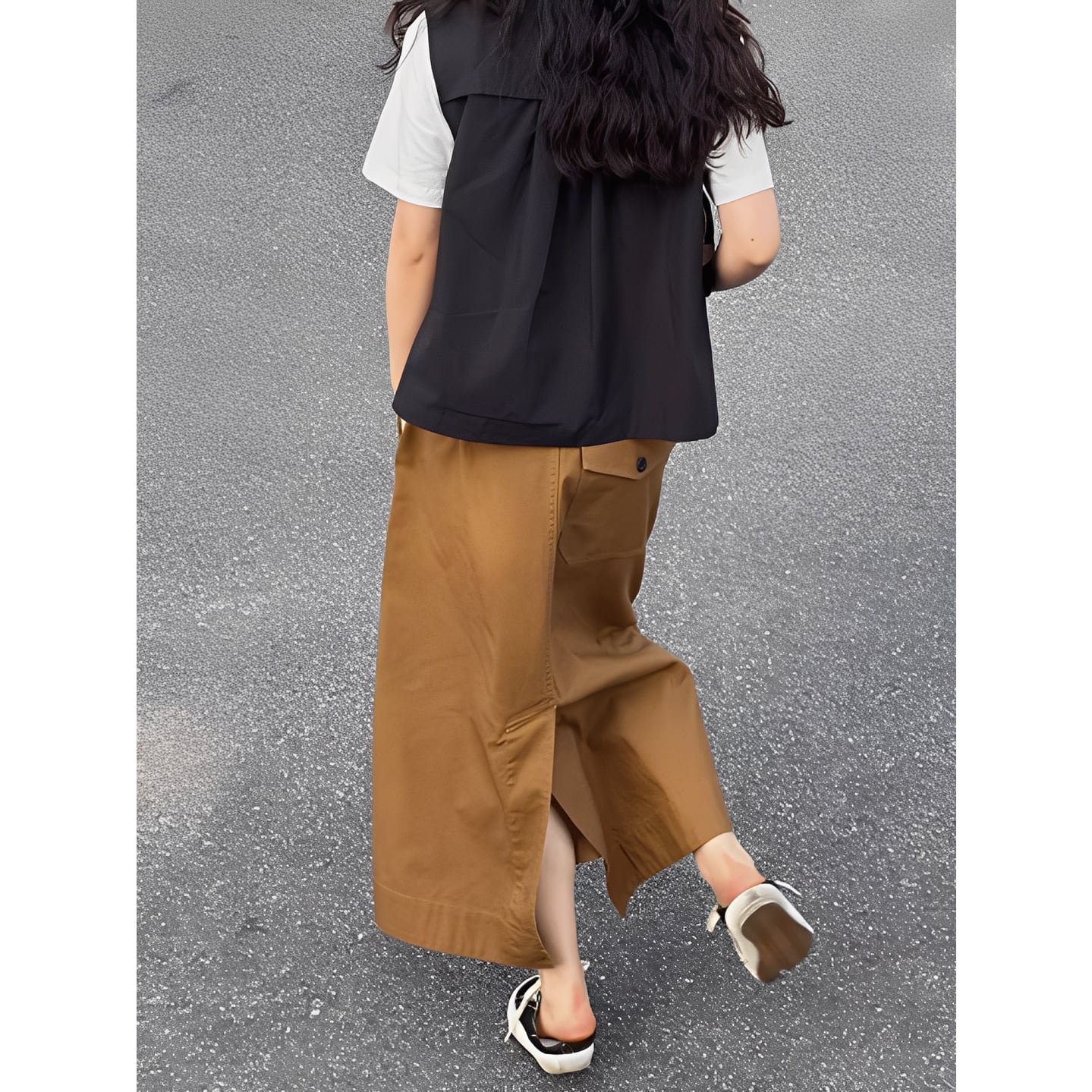 カーゴ風デザインが絶妙にマッチした、大人のバックスリットスカート。