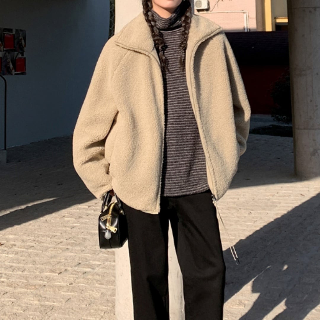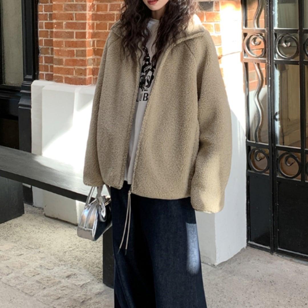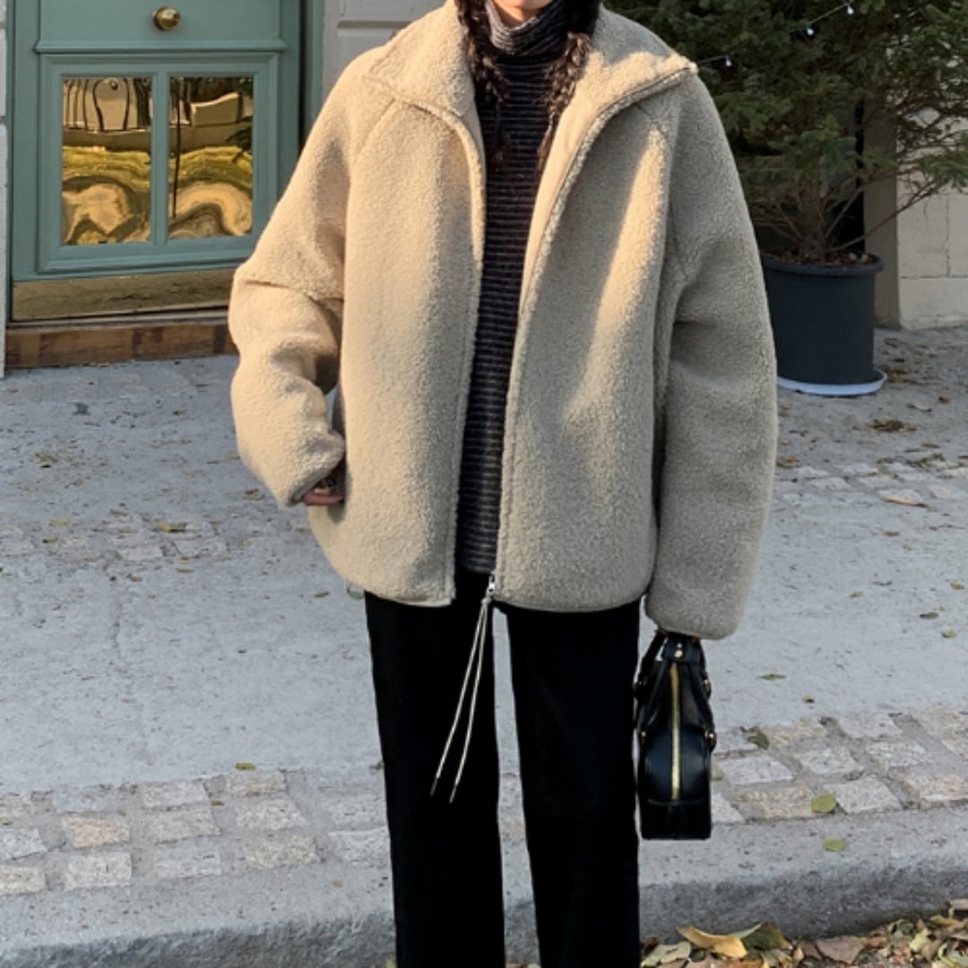 ふんわり柔らかな肌ざわりが心地よい、大人のためのソフトタッチボアブルゾン。
