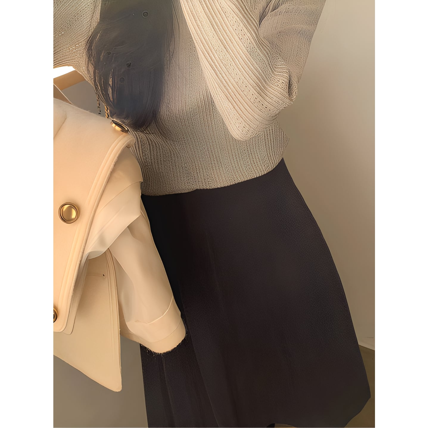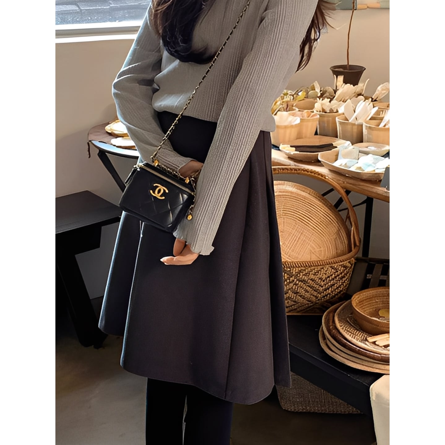 動くたびに揺れるシルエットが上品で、スタイルアップ効果も◎
