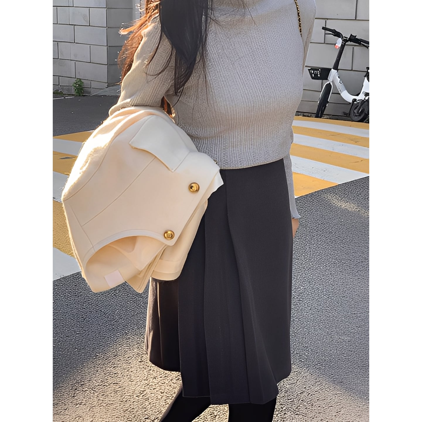 ニットやブラウスを合わせて、オンオフ問わず活躍する一枚です。