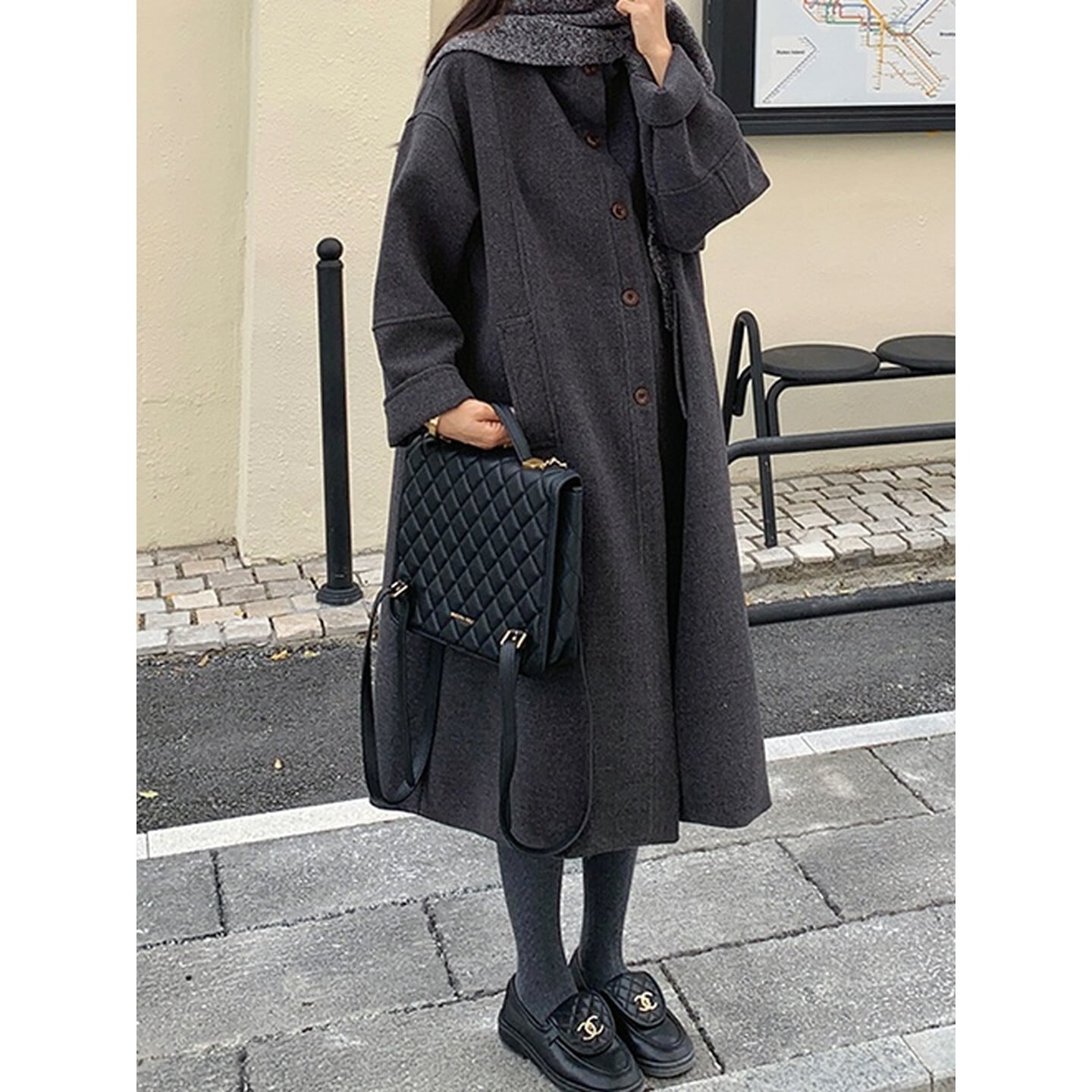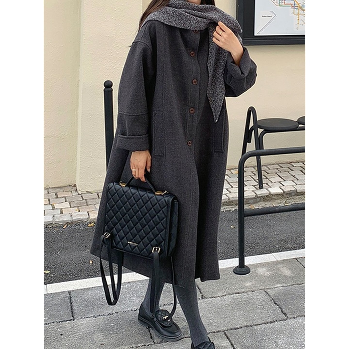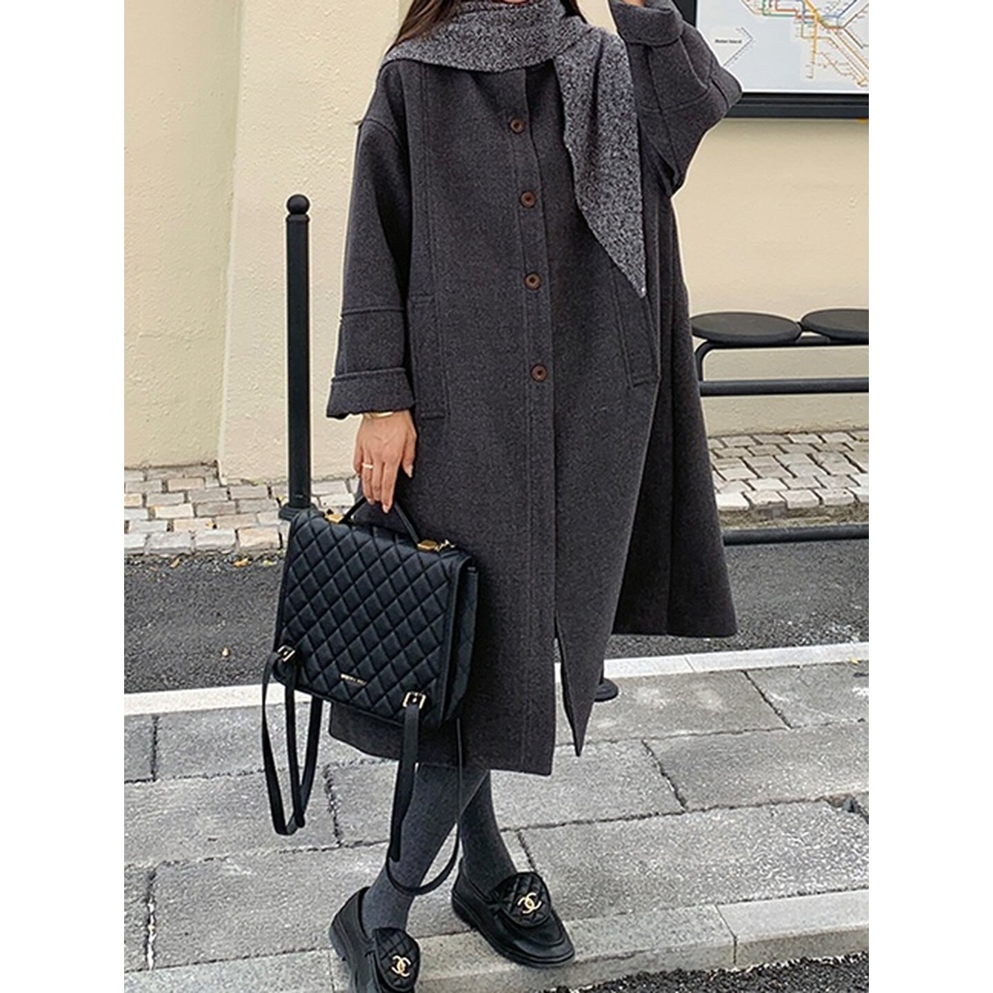 肩のラインや長め丈が上品さを引き立て、羽織るだけで洗練された印象に◎