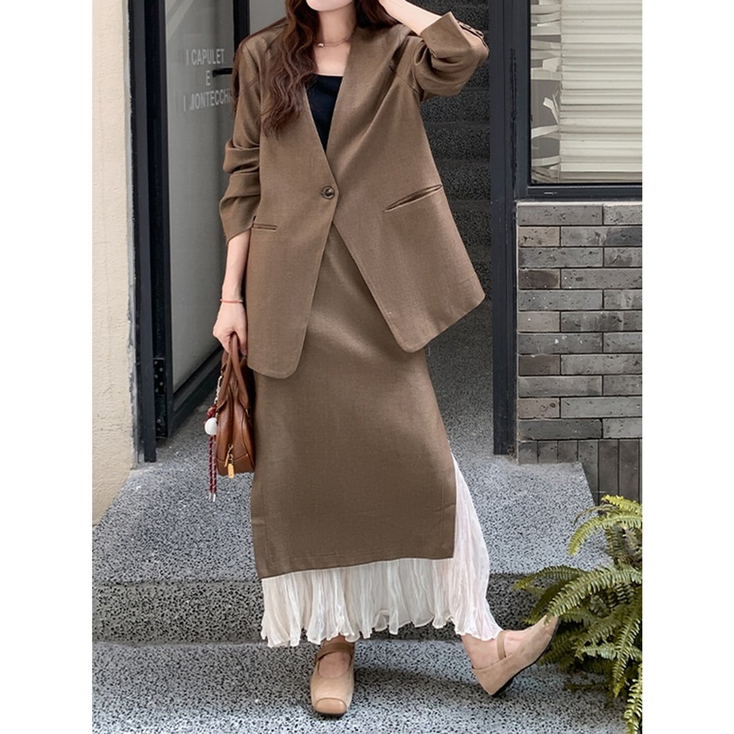 すっきりとしたシルエットと程よいきちんと感で、スタイルアップも叶えてくれます◎