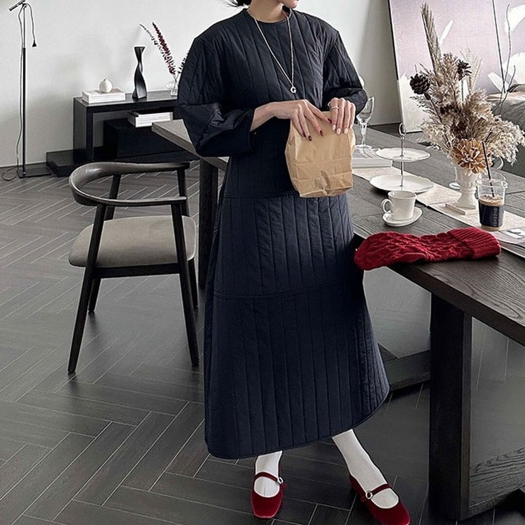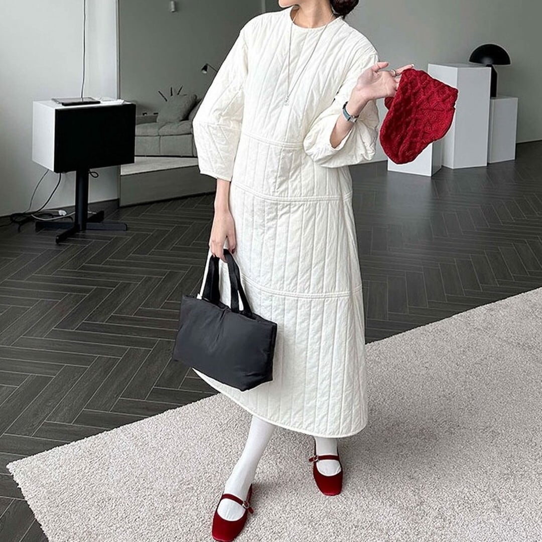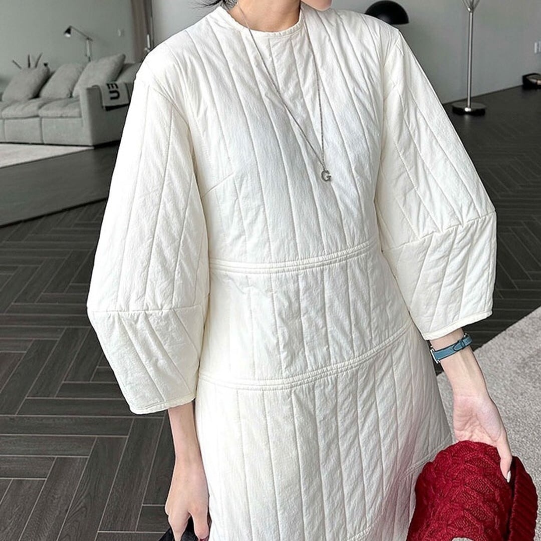 程よいボリューム感と表情のあるキルティング素材が魅力の、大人のワンピース。