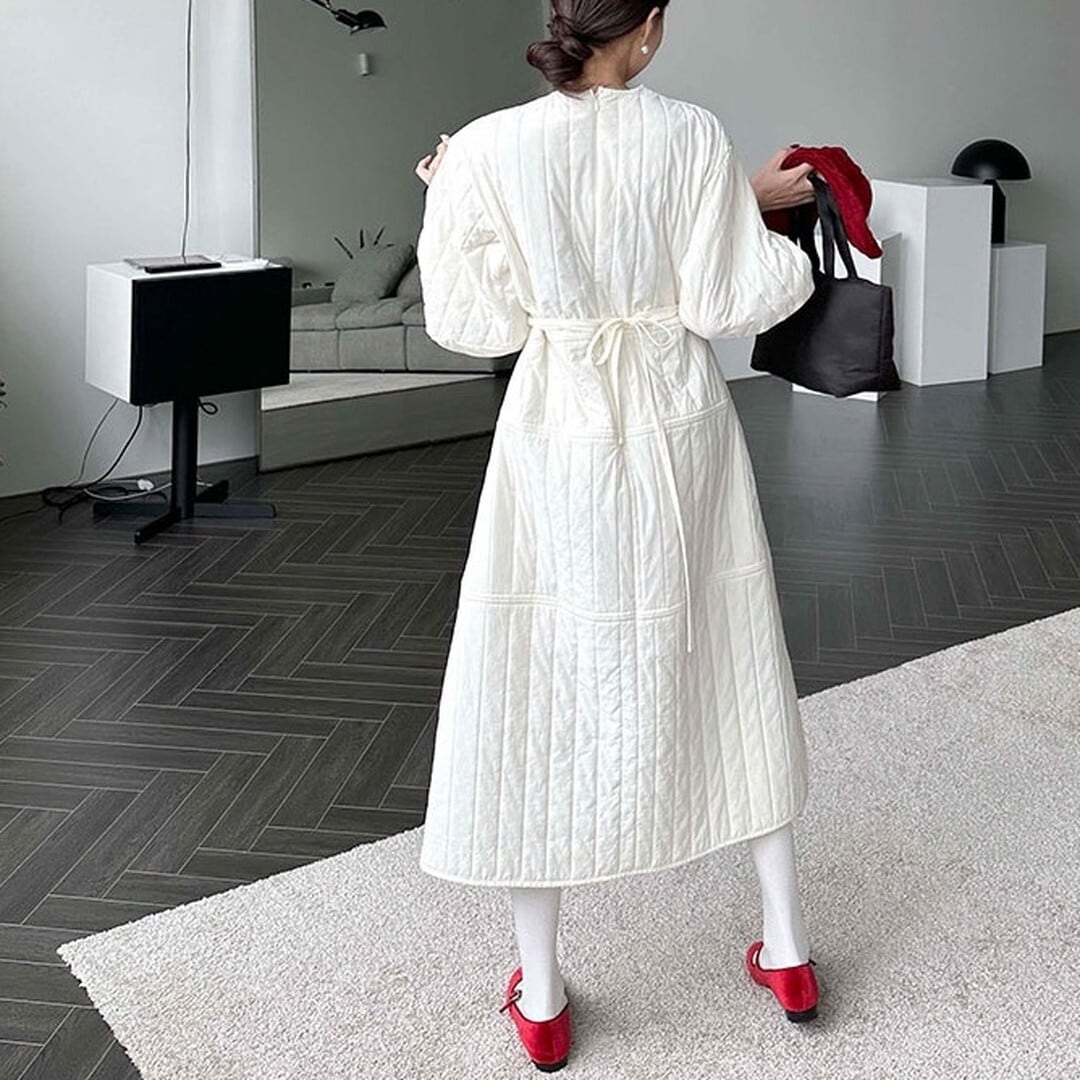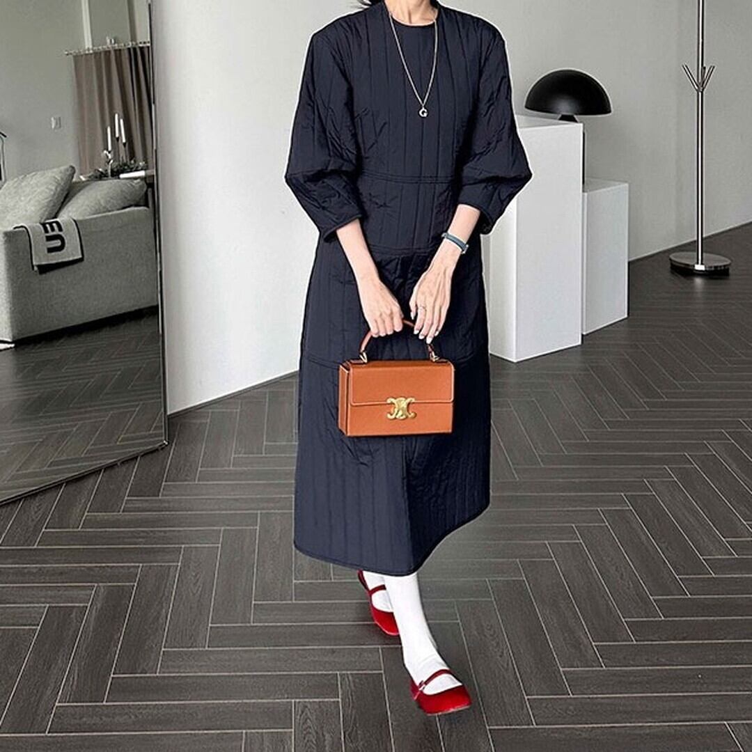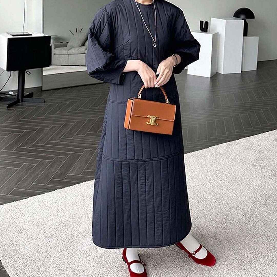 程よいボリューム感と表情のあるキルティング素材が魅力の、大人のワンピース。