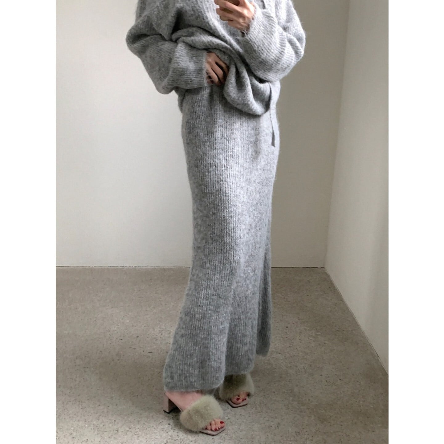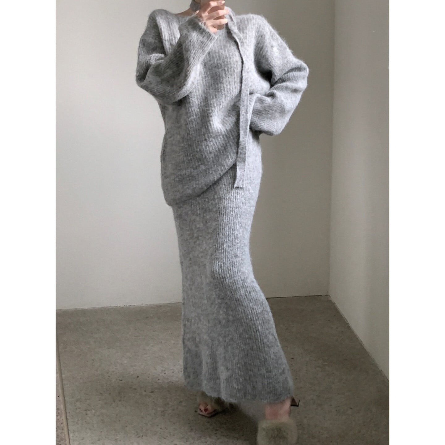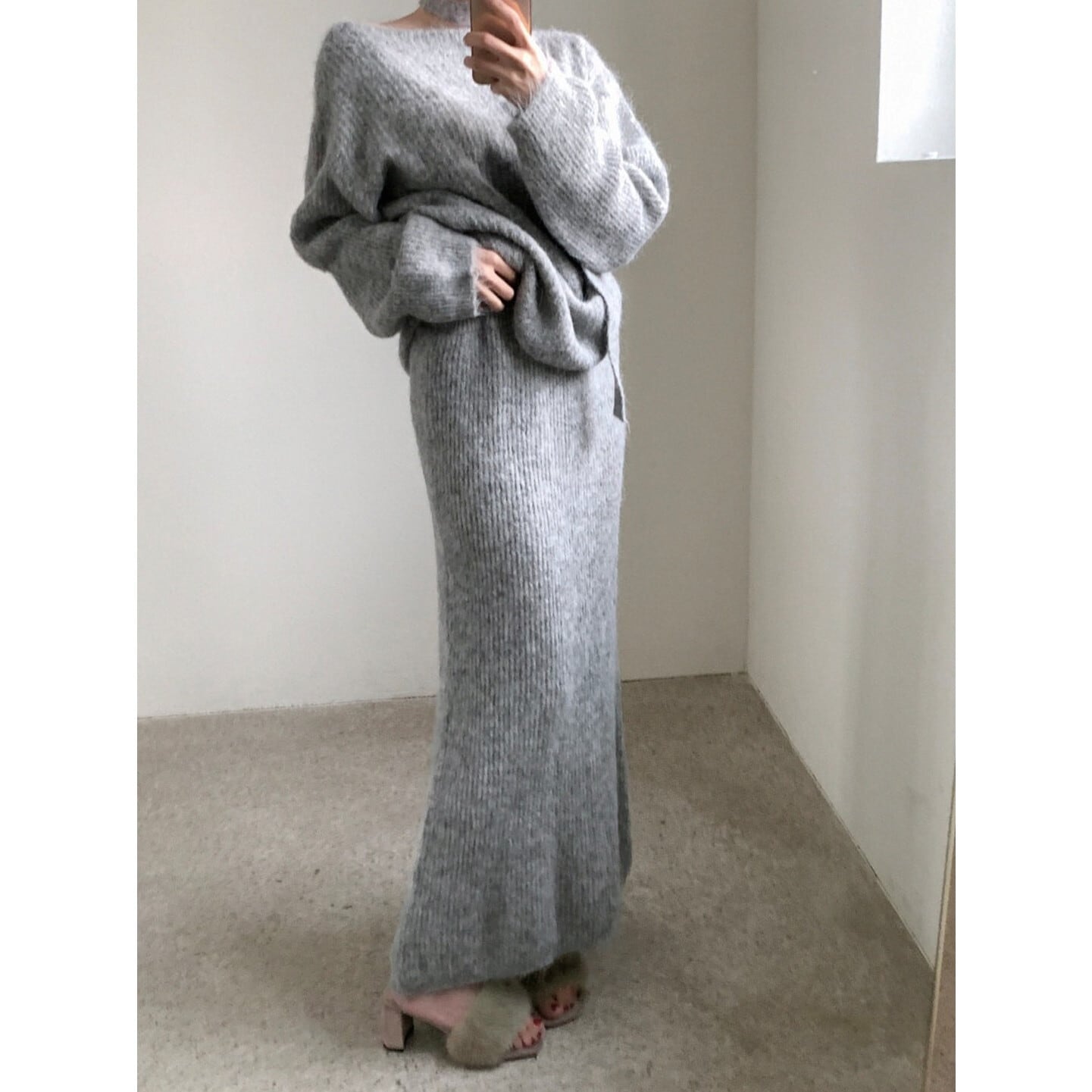柔らかなニット素材と美しいシルエットが魅力の、大人のムード漂うセットアップ。