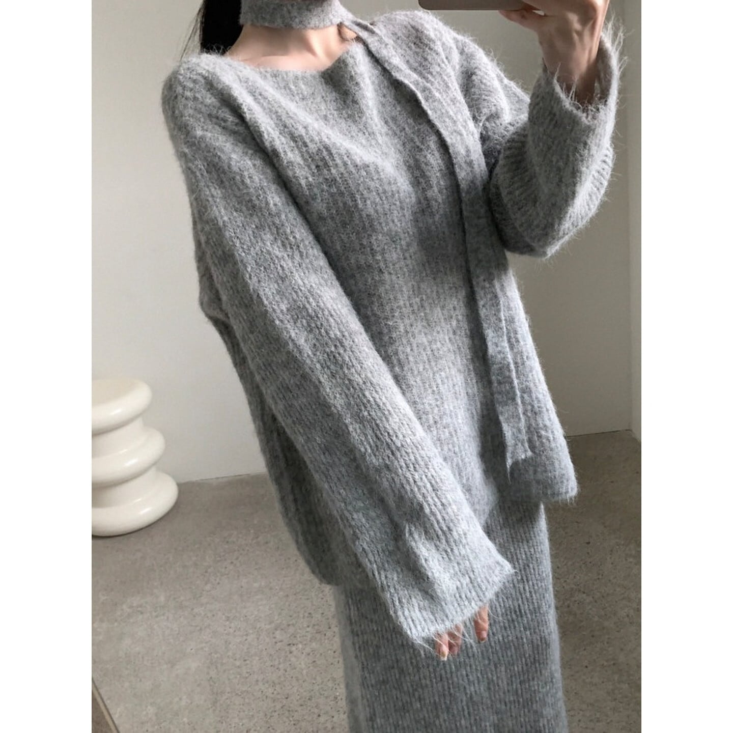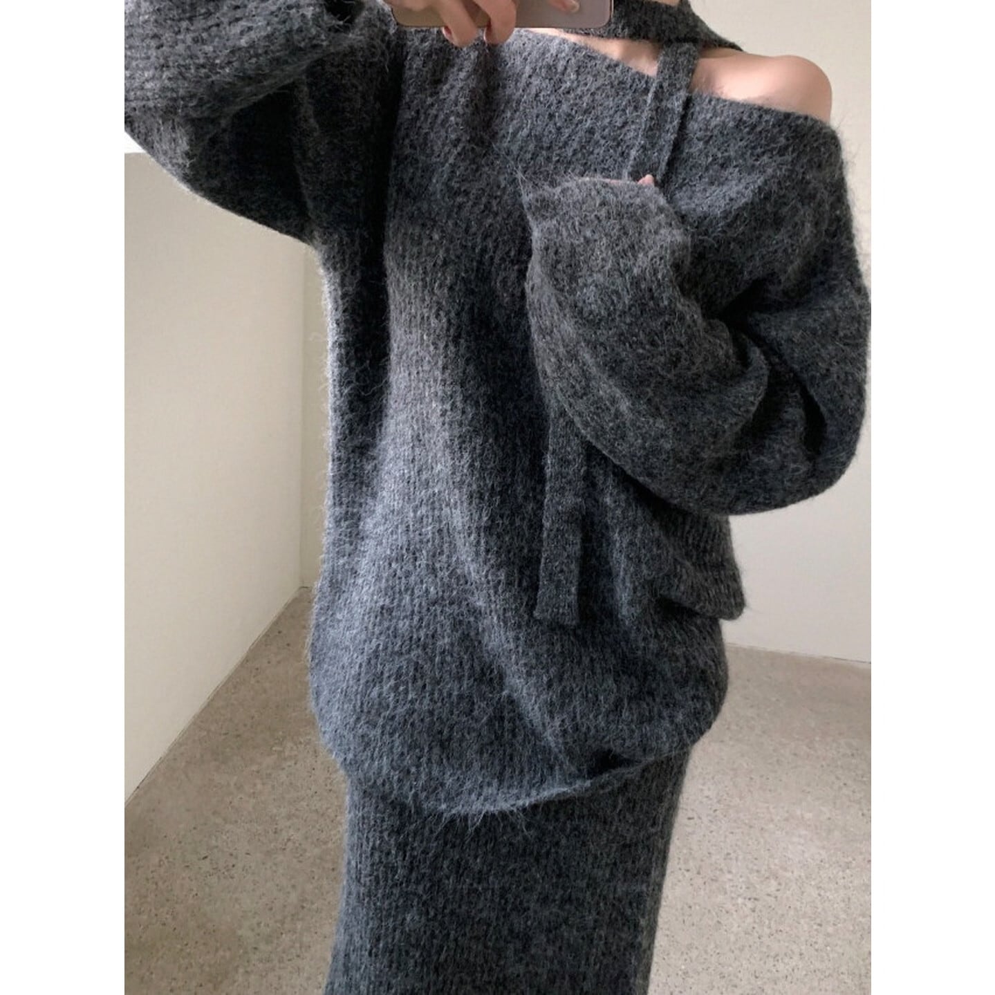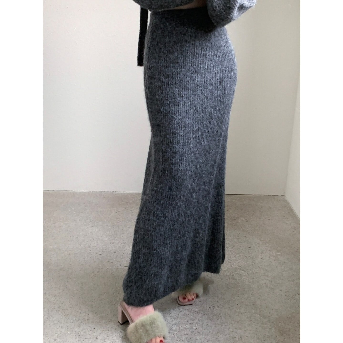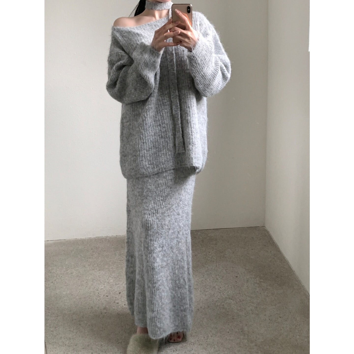 柔らかなニット素材と美しいシルエットが魅力の、大人のムード漂うセットアップ。