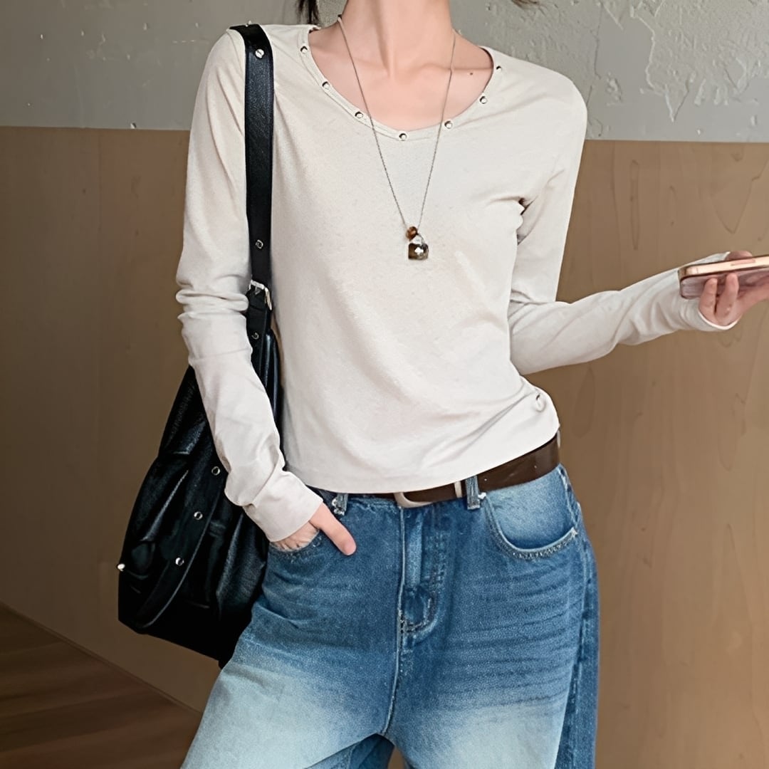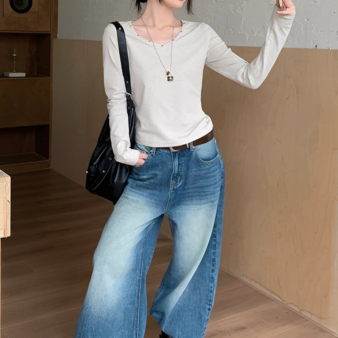 程よく開いたUネックがデコルテを美しく見せる、大人のシンプルTシャツ。
