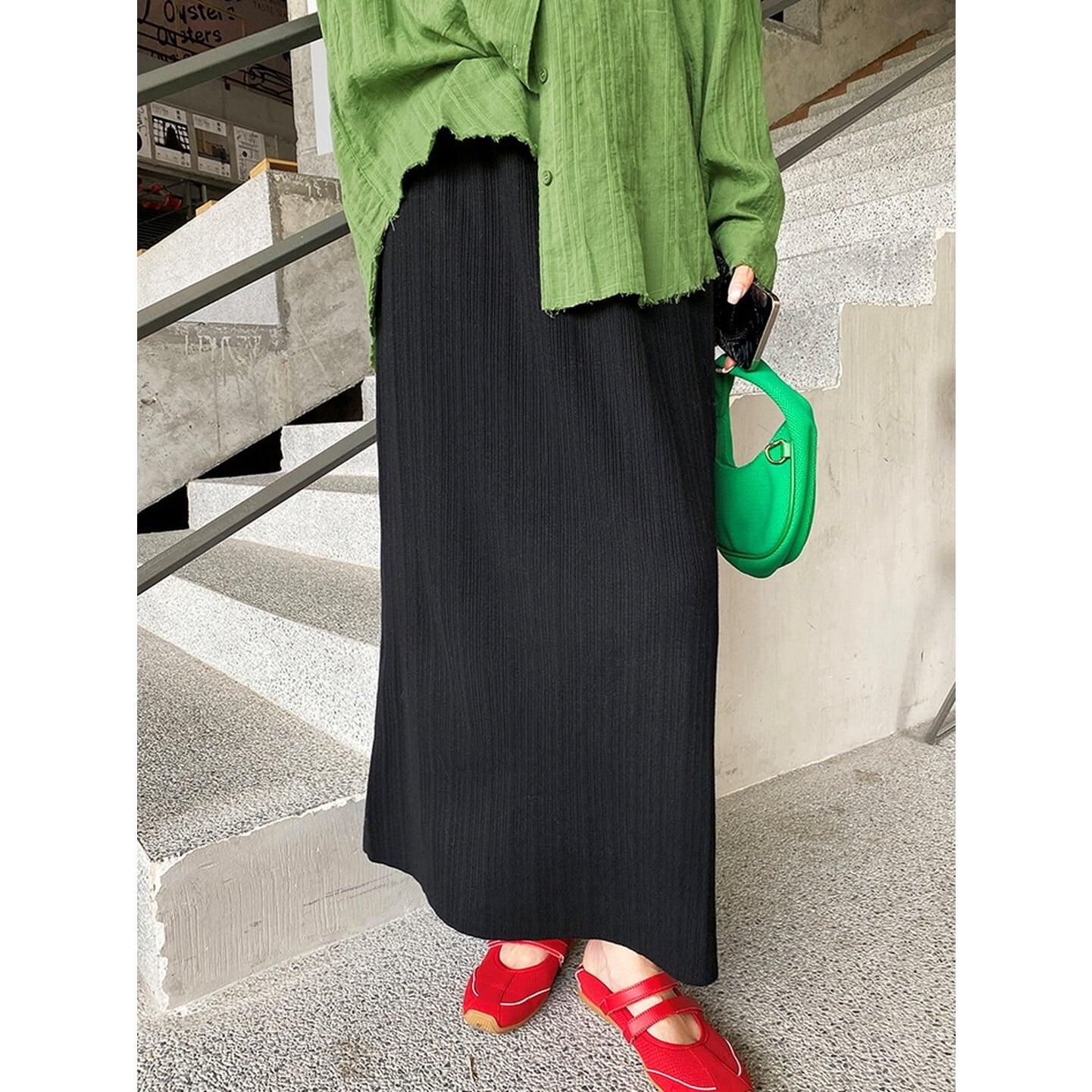 すとんと落ちるナチュラルなシルエットが魅力の、大人のロングスカート。