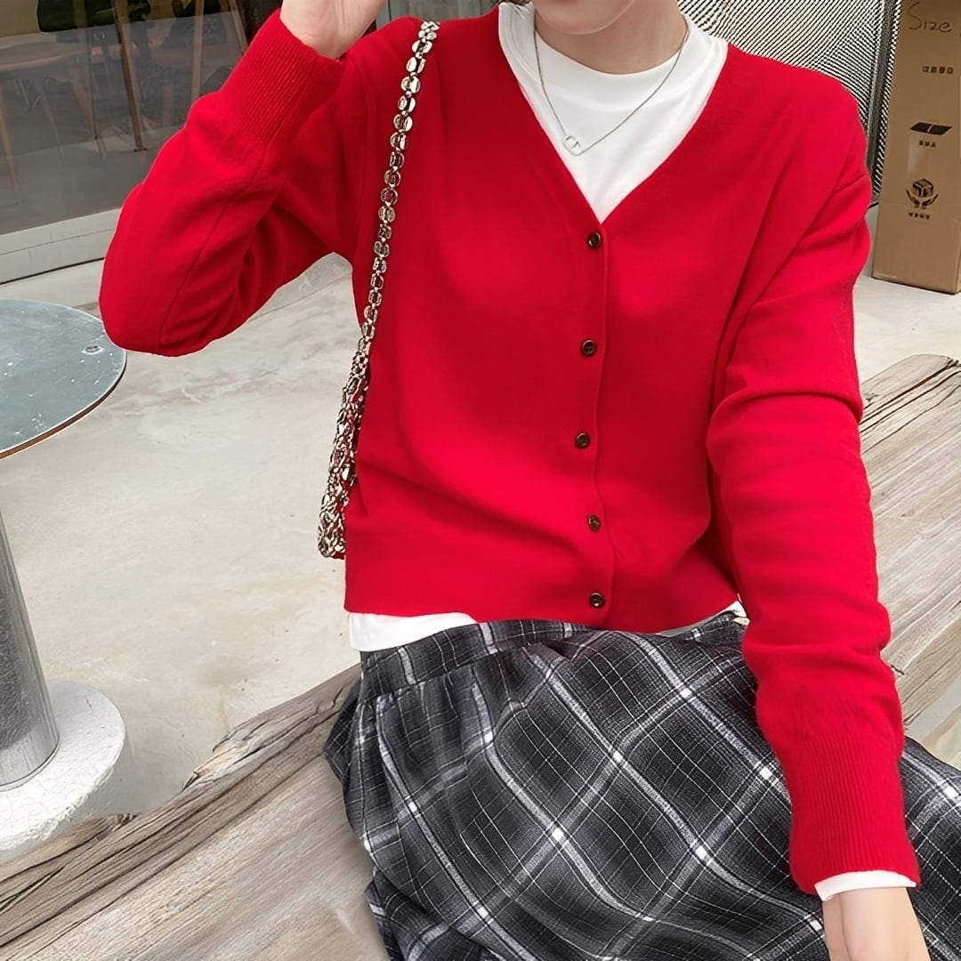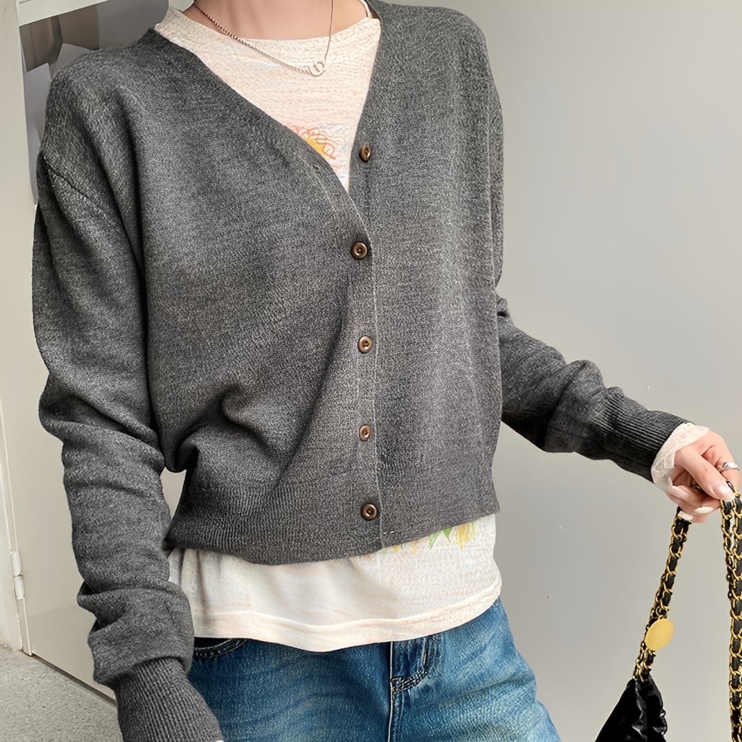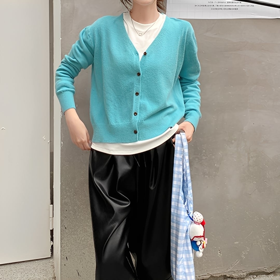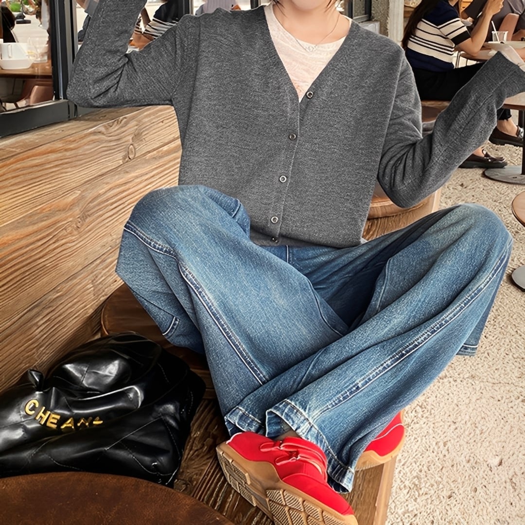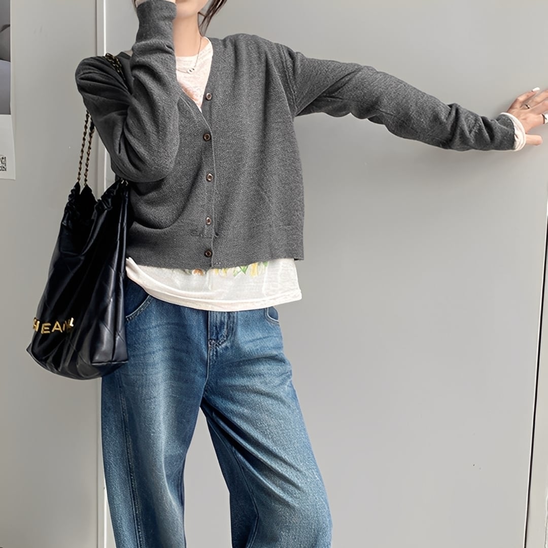 すっきりと開いたVネックが大人らしい抜け感を演出する、デイリー使いにぴったりなカーディガン。