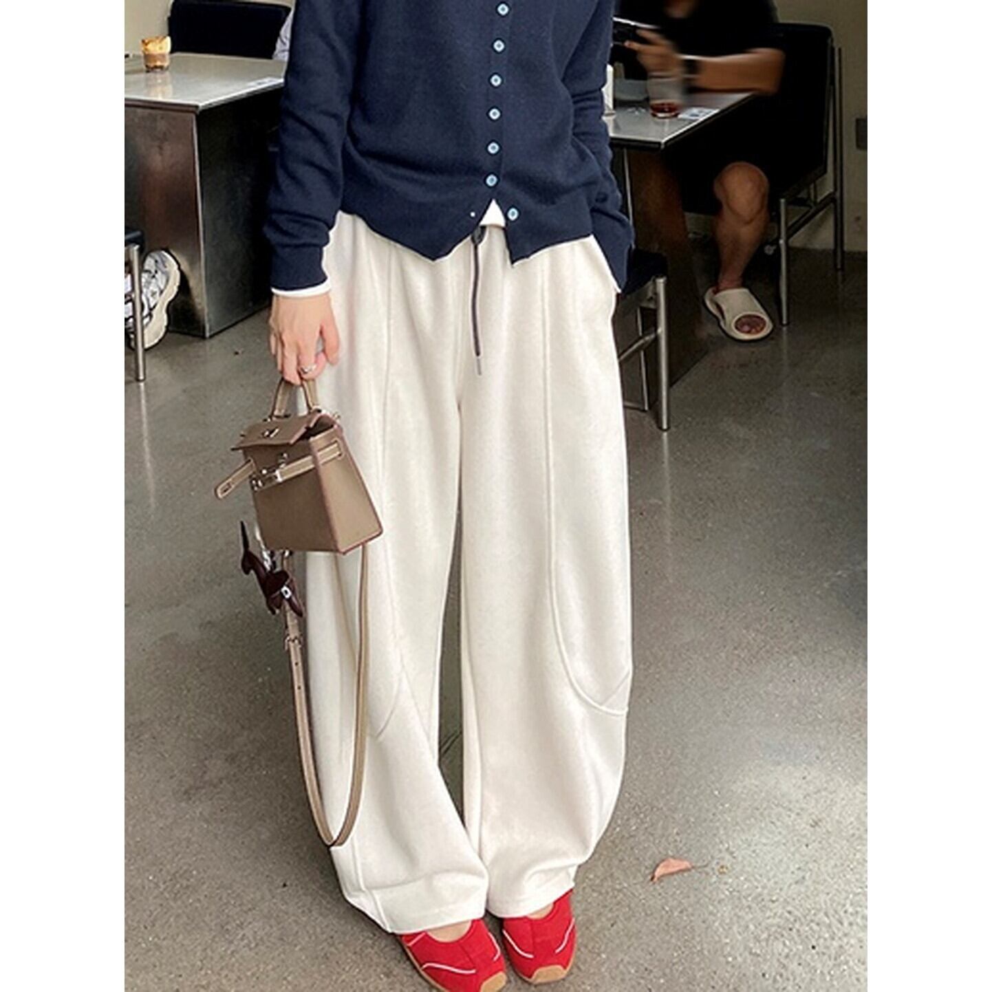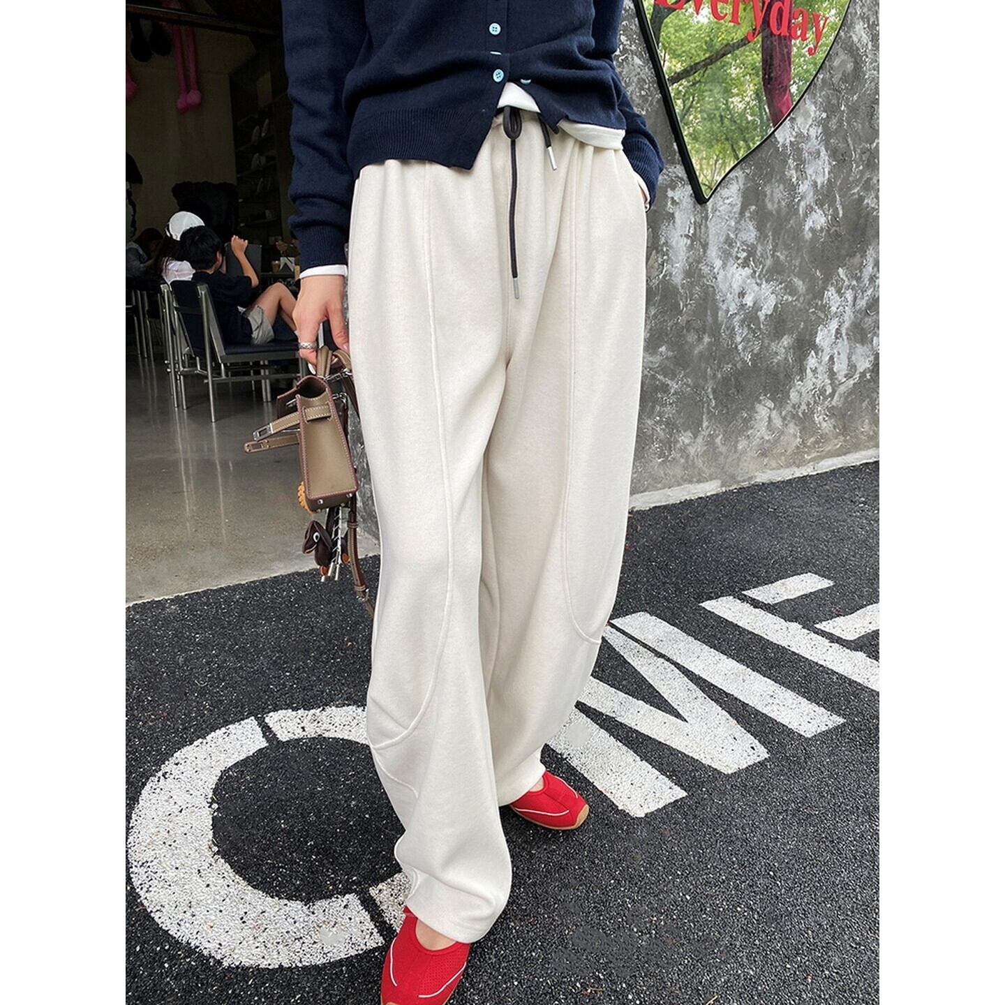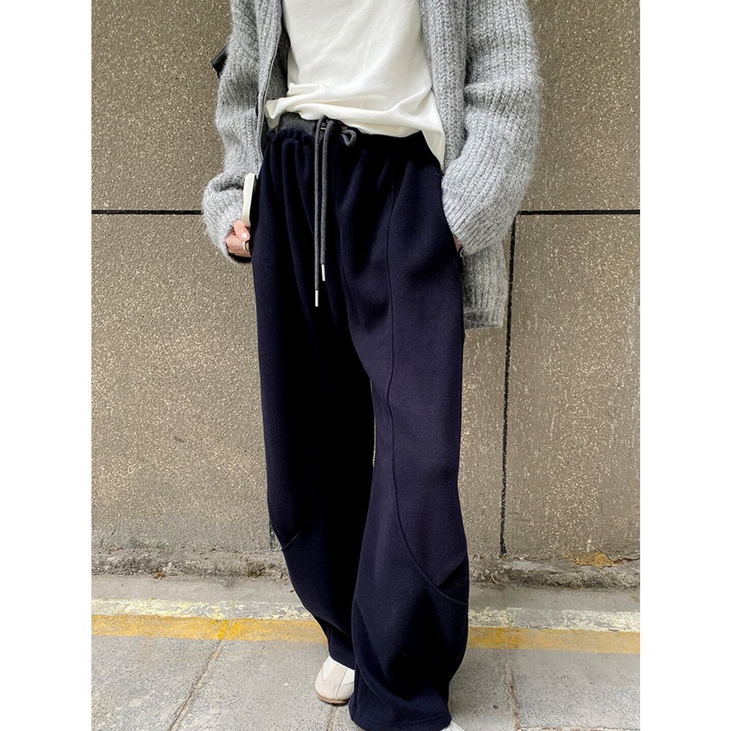 カーブステッチドローストリングワイドパンツ/2col M02658