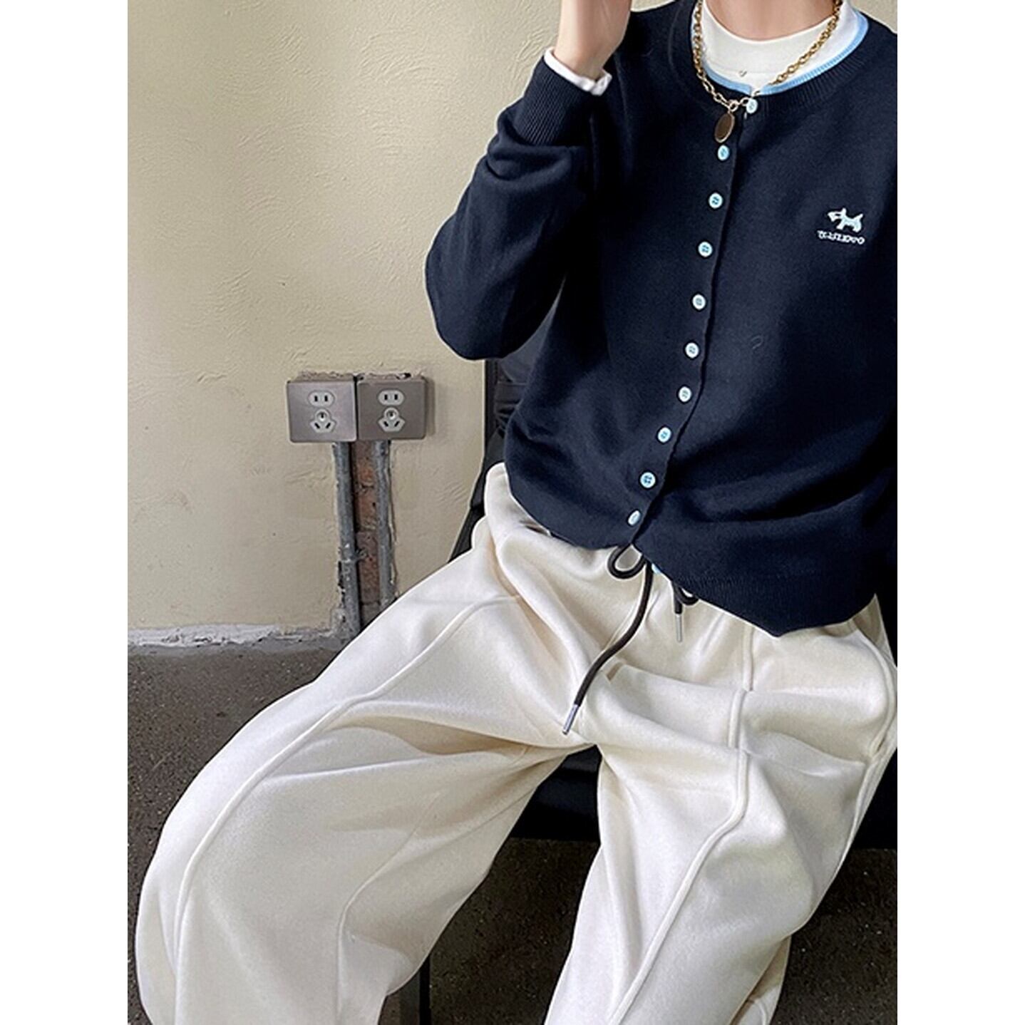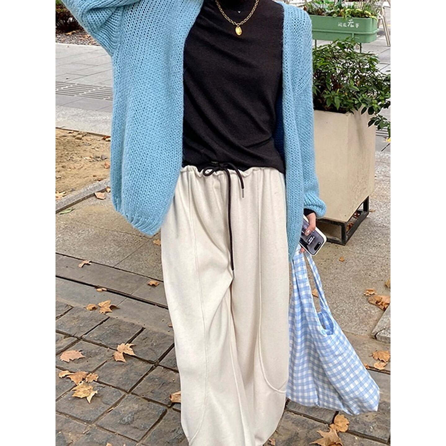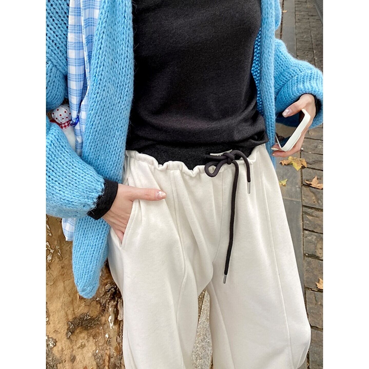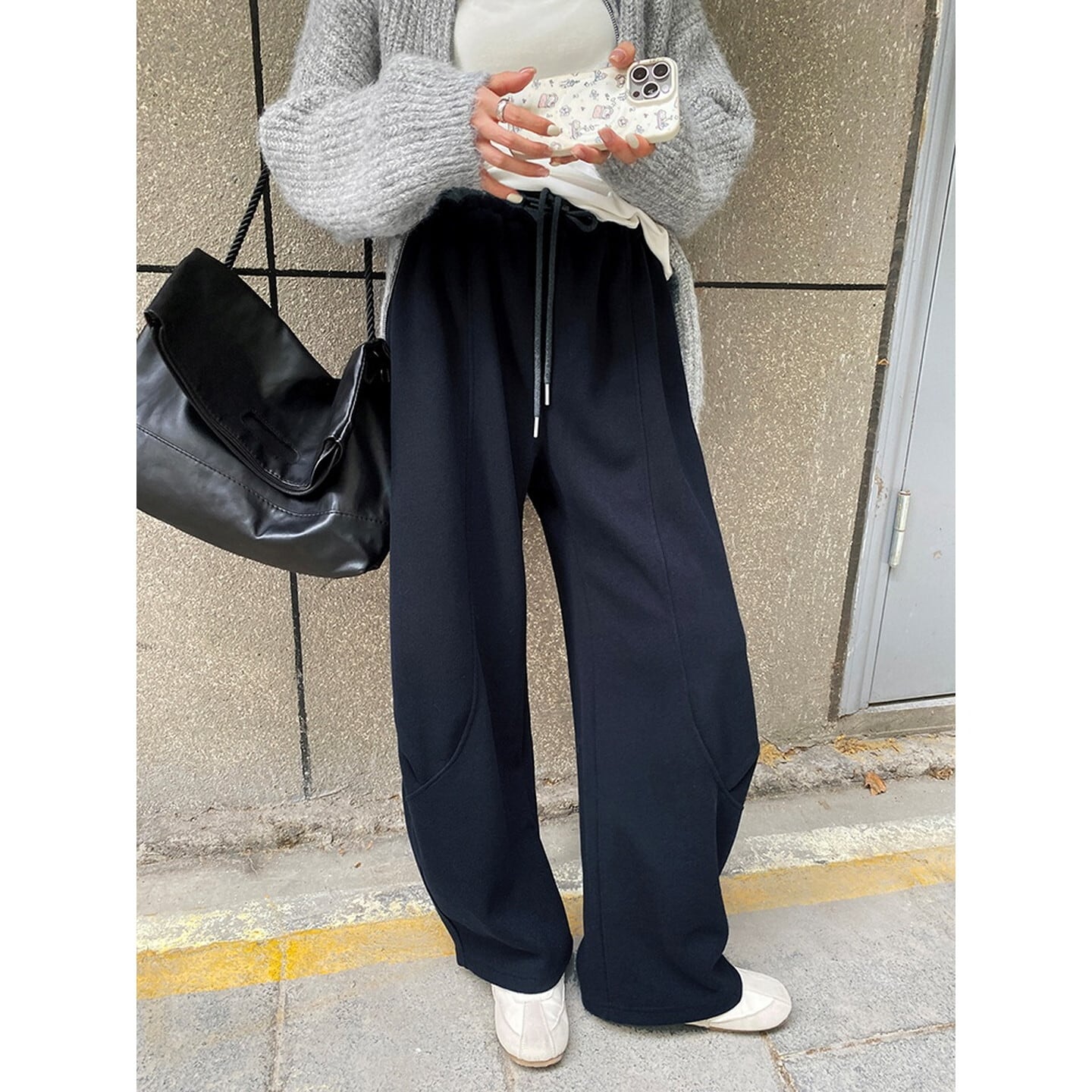 カーブステッチドローストリングワイドパンツ/2col M02658