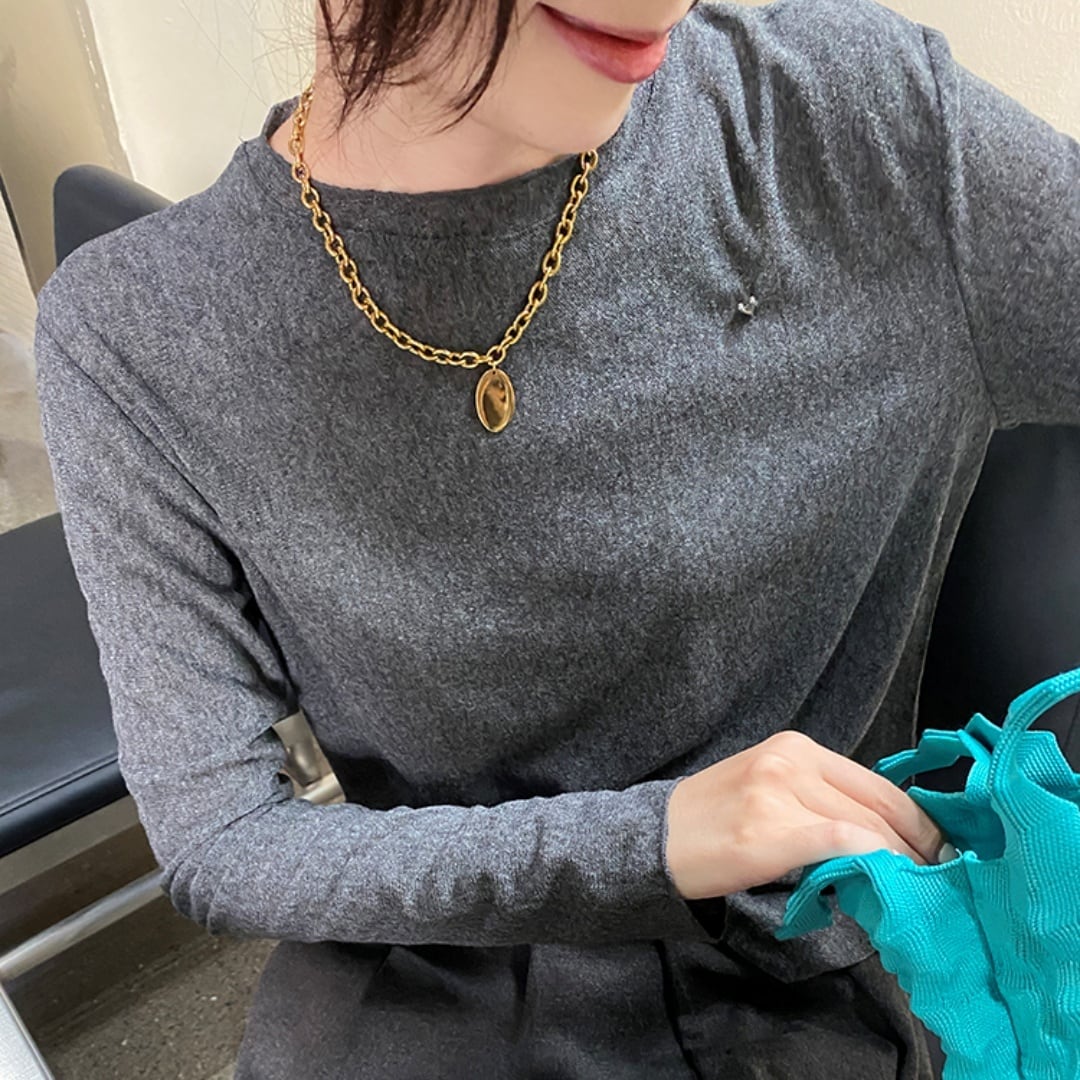 すっきりとしたシルエットと柔らかな風合いが魅力の、ベーシックインナーニット。